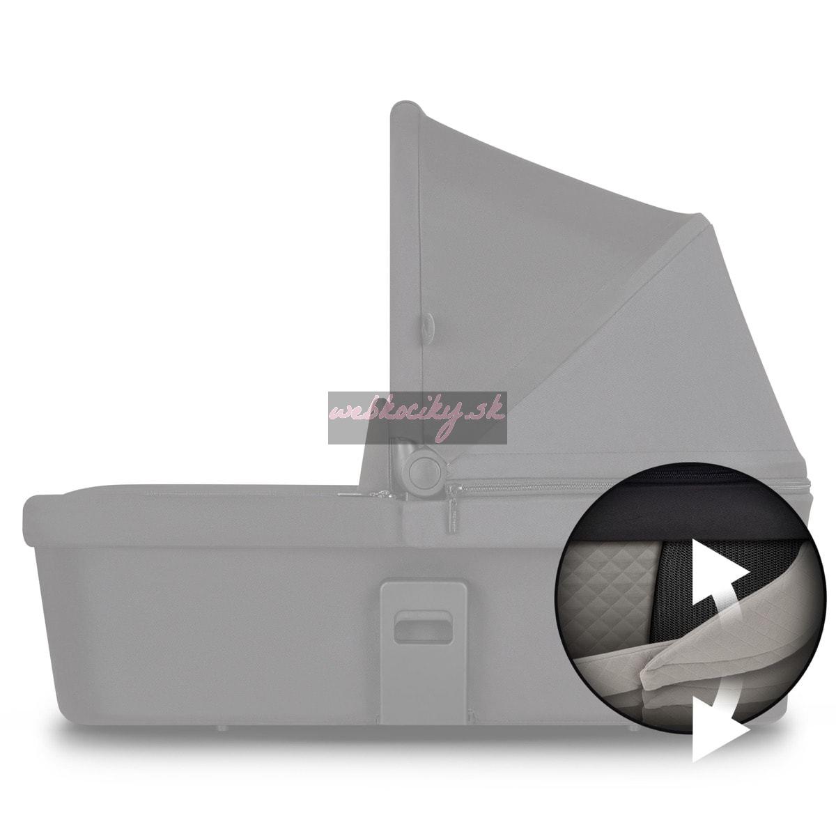 Korbička ponúka dieťaťu maximálne pohodlie. Dve ventilačné okienka je možné jednotlivo otvoriť alebo zavrieť, aby bola zaistená optimálna cirkulácia vzduchu. Klinovito tvarovaný ergonomický matrac CozyCloud® má integrované vzduchové otvory v pene pre zaistenie optimálnej ventilácie. Navyše má extra mäkké ochranné okraje, ktoré sú vyvýšené, takže citlivá pokožka vášho dieťaťa neleží priamo na ventilačnom okienku. Pri cestách autom je možné korbičku ľahko zložiť a uložiť do batožinového priestoru bez toho, aby zaberala veľa miesta. Kočík je vybavený organizérom pre fľaše, cumlíky, obrúsky a podobne a taškou na vybavenie.