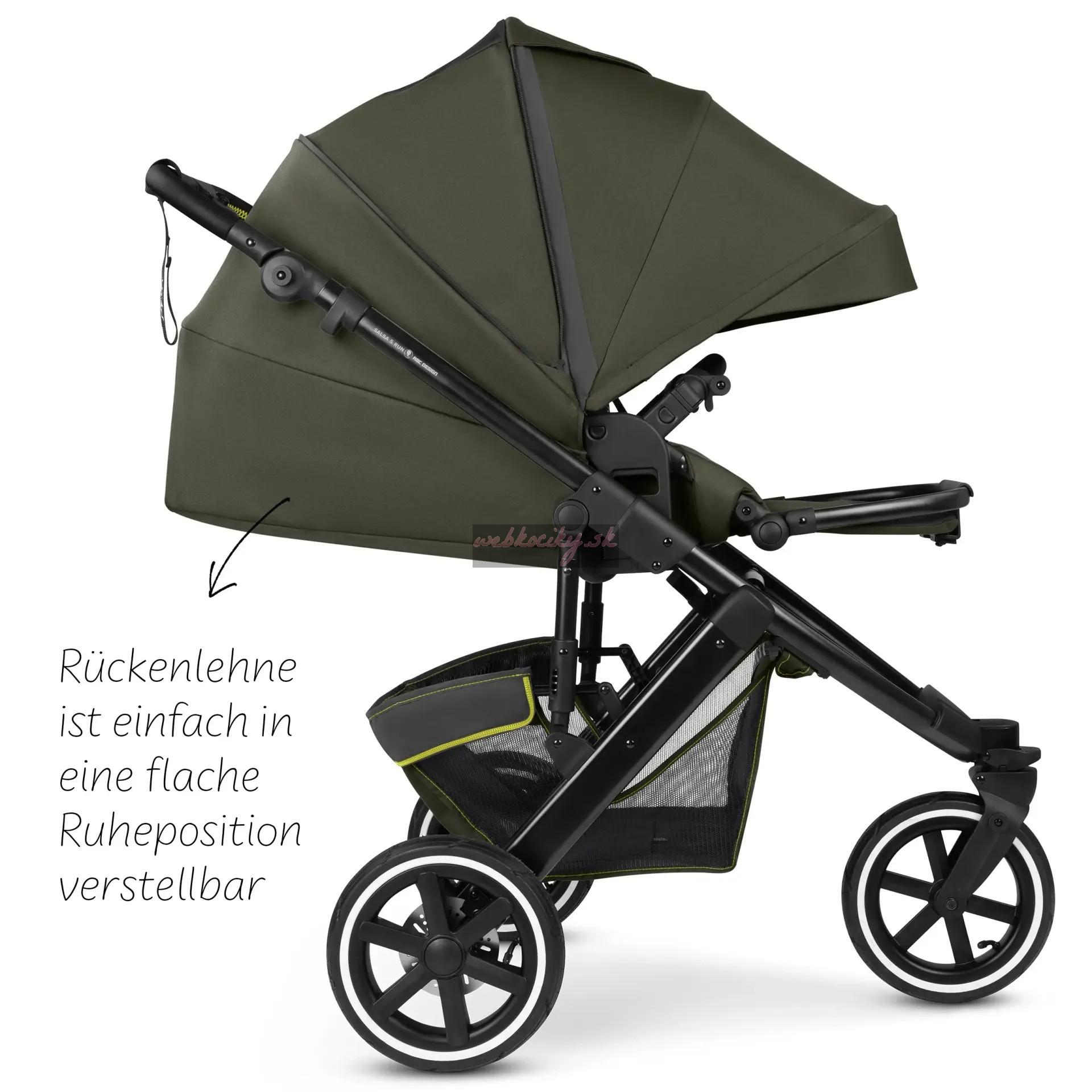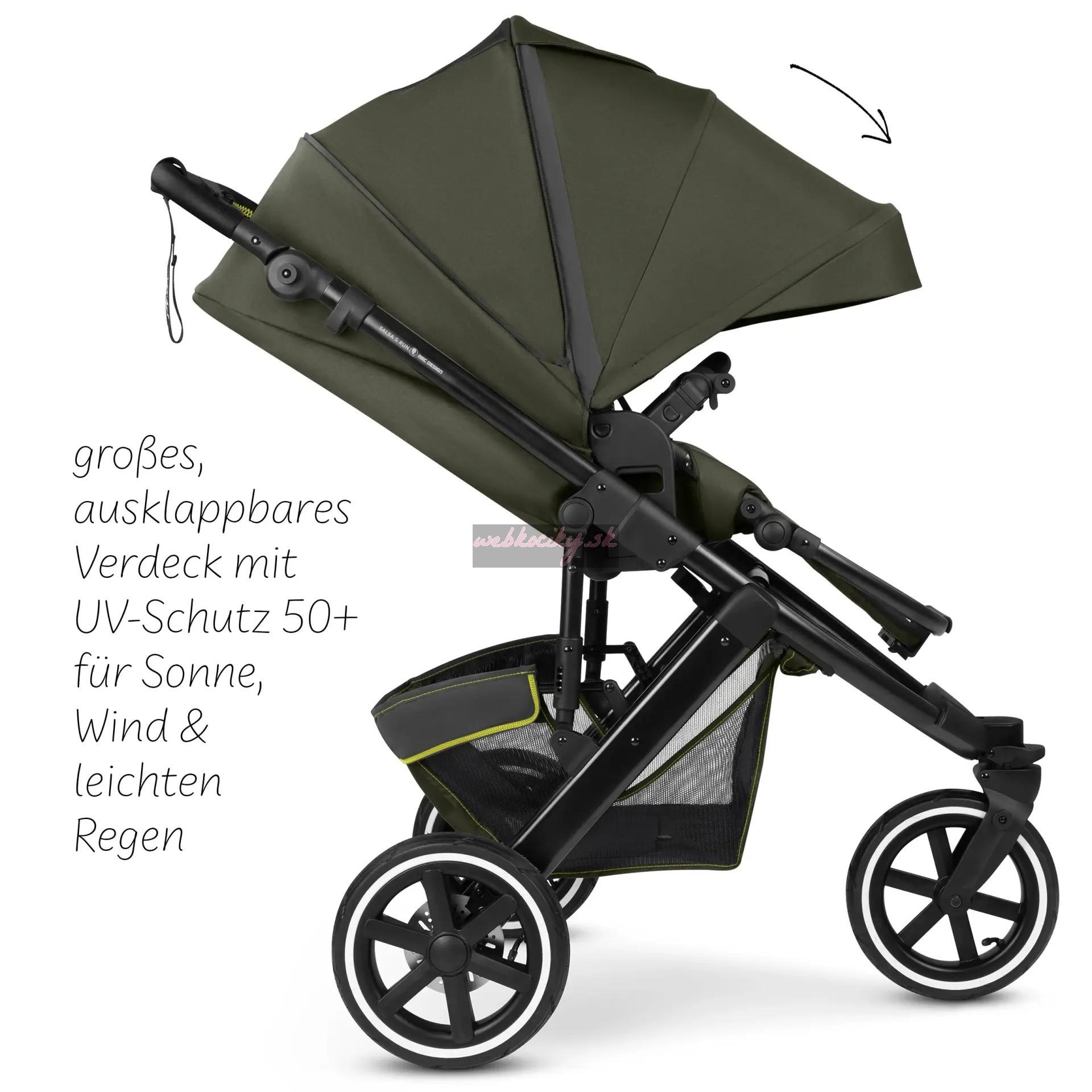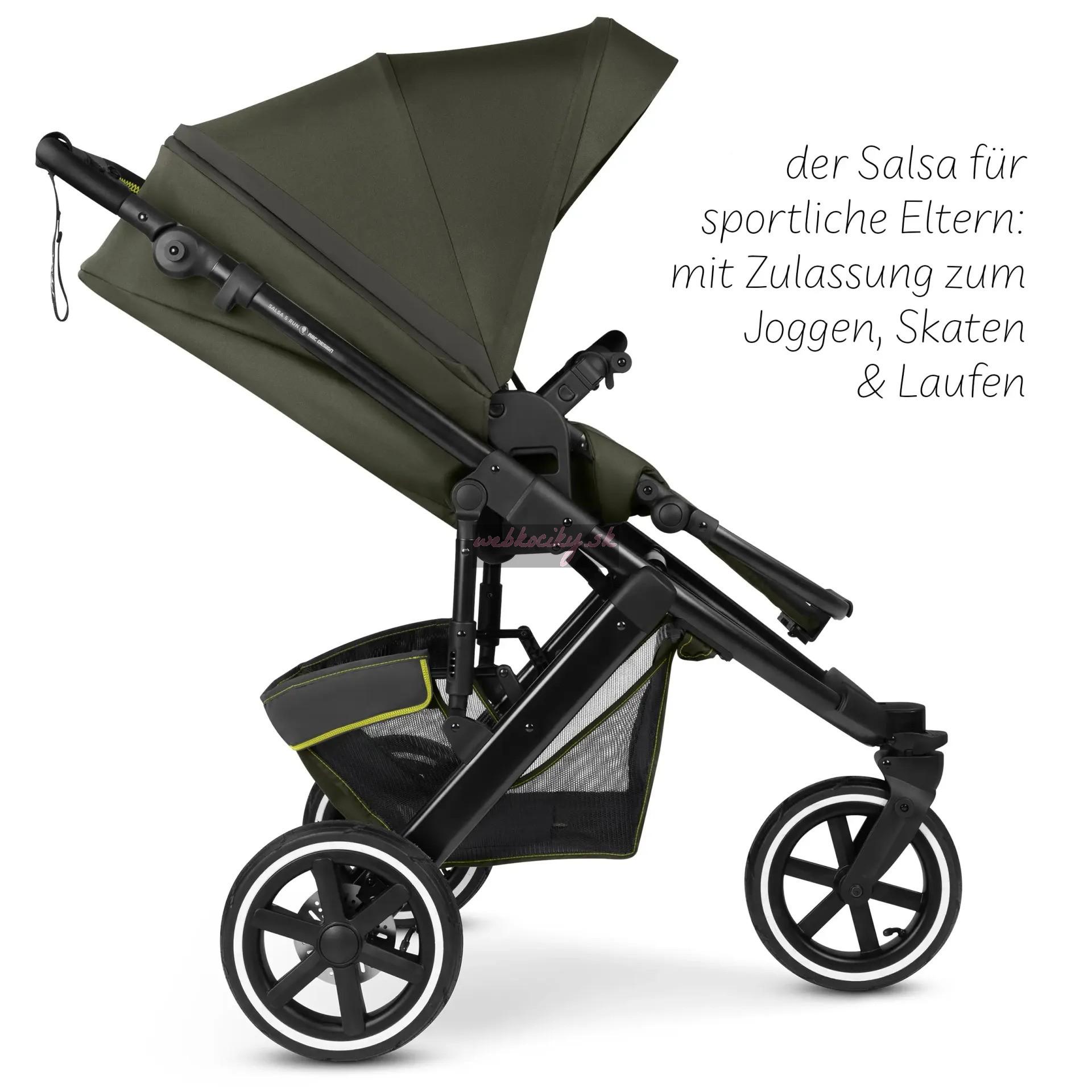 Pohodlne polstrované ramenné popruhy mierne vystupujú z operadla, čo výrazne uľahčuje usadenie dieťaťa. Ak chcete autosedačku Salsa 5 Run prepravovať, jednoducho ju kompaktne zložte. Ak ho potrebujete rýchlo premiestniť, môžete ho rýchlo zložiť aj pomocou nadstavca na kočík - bez ohľadu na to, či je sedadlo otočené v smere alebo proti smeru jazdy. Kočík Salsa 5 Run je stvorený na šport. To však nevylučuje každodenné používanie. Môžete si užívať plnú flexibilitu v každodennom živote tým, že ho budete používať na nenáročné prechádzky po meste, výlety mimo vyšliapaných ciest alebo aj na behanie.