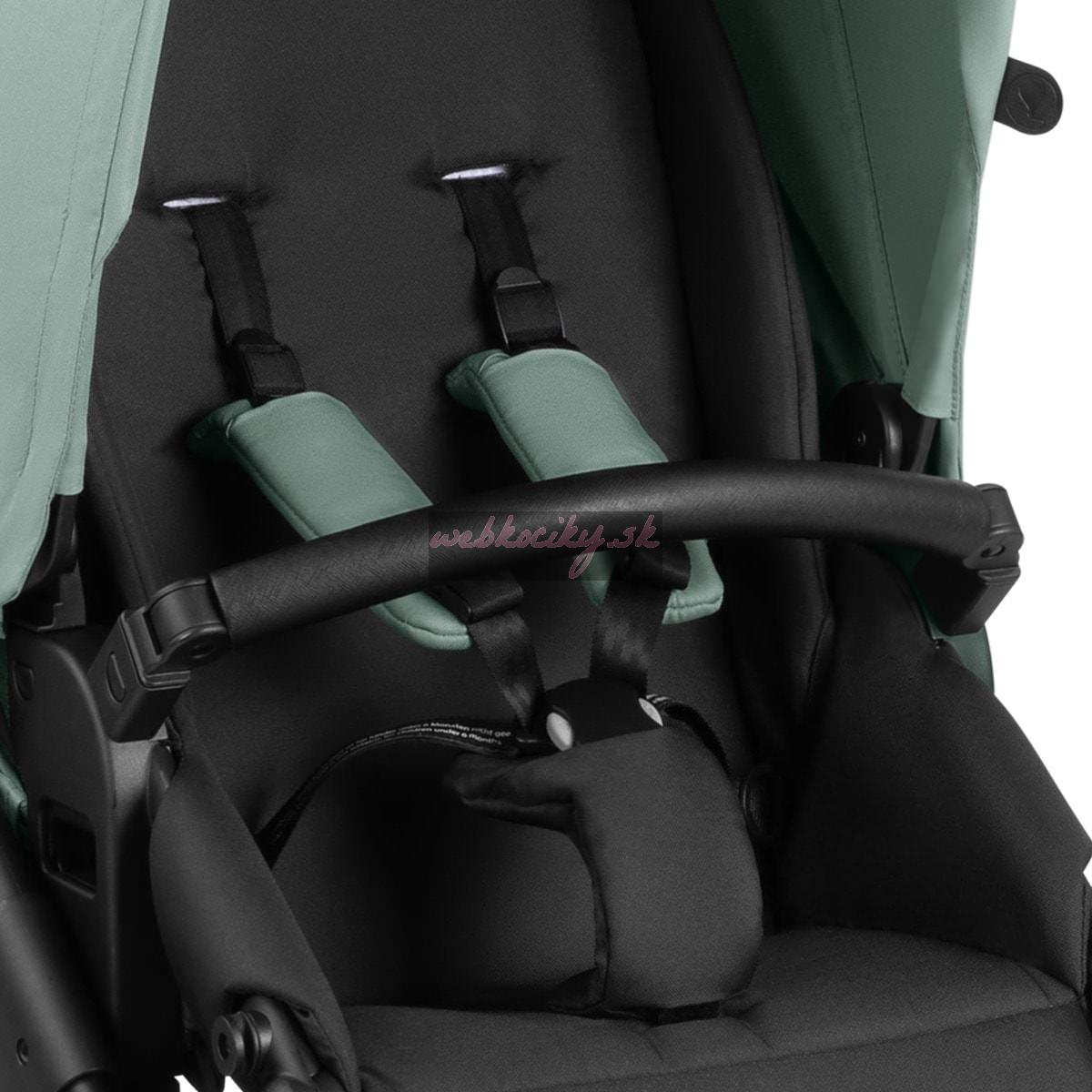 Polstrovnanú otočnú športovú nadstavbu je možné nastaviť do polohy úplne v ľahu aj v sede. K dispozícii je plynule nastaviteľný 5-bodový systém pásov s magnetickým zapínaním. Ramenné popruhy sú polstrovanné a mierne vyčnievajú z operadla, takže pripútanie dieťaťa je ľahšie. Ergonomickú rukoväť je možné nastaviť podľa vašich potrieb.