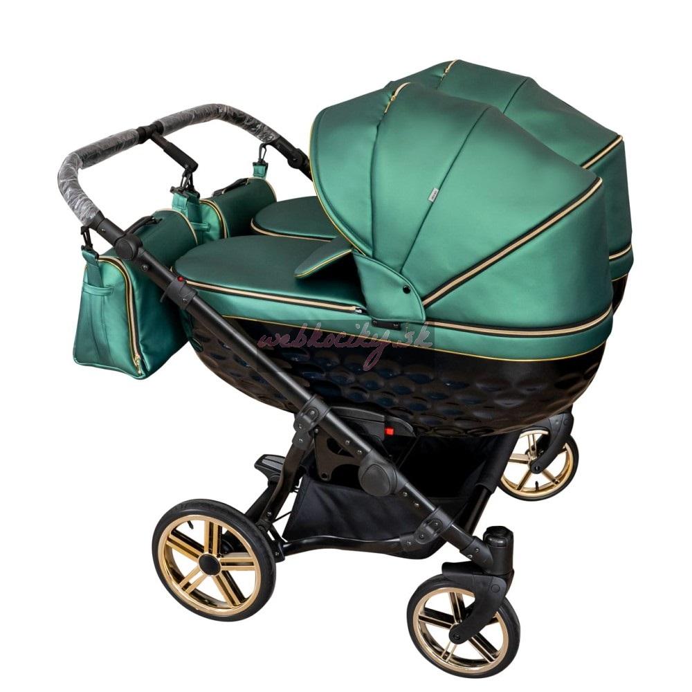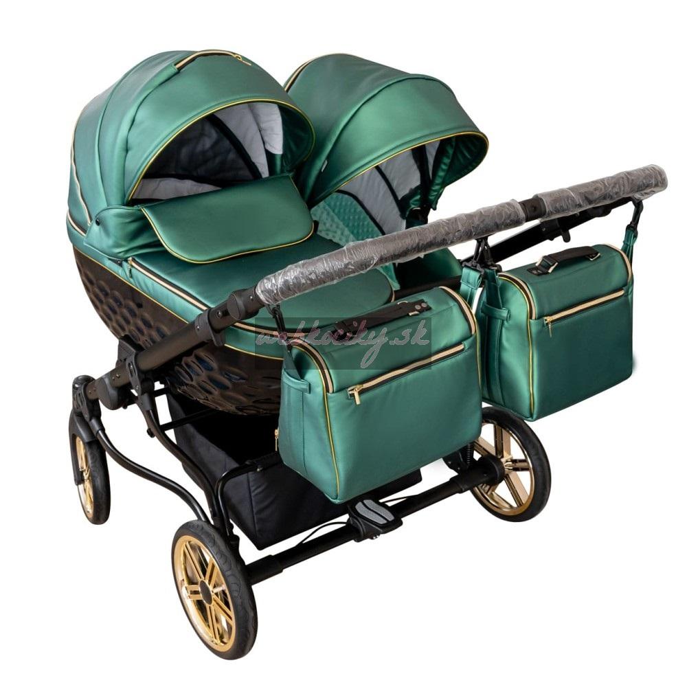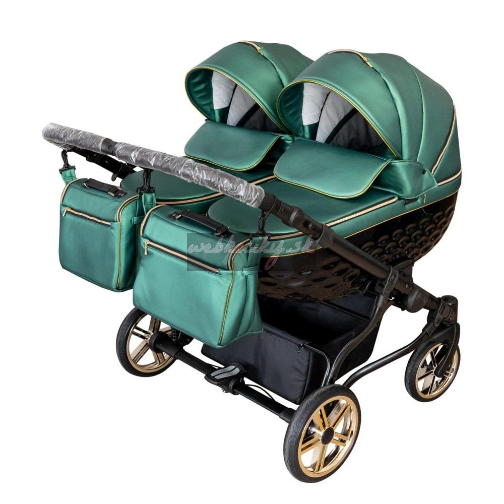 Novinka: Multifunkčná kombinovaný kočík Adbor Duo LUX pre dvojčatá. Skladá sa z podvozku s kolesami, hlbokej korby a športové nadstavby. Ľahký rám, čerpaná kolesá, predné otočné kolesá, centrálna brzda, malé rozmery po zložení, nastaviteľná opierka a nánožník. Výbava: pláštenka, moskytiera, taška na plienky. Výhodou oproti ostatným modelom je využitie len jednej priestranné korbičky pre obe bábätká, kdežto ostatné modely ponúka dve oddelené korby. Verzia 2v1 - bez autosedačiek.