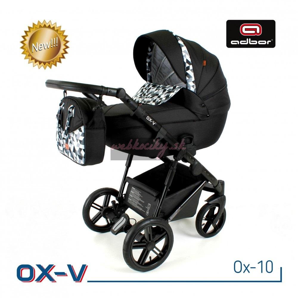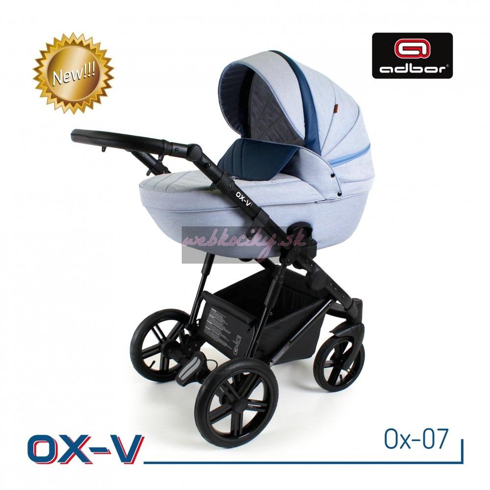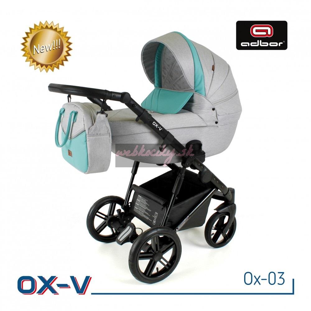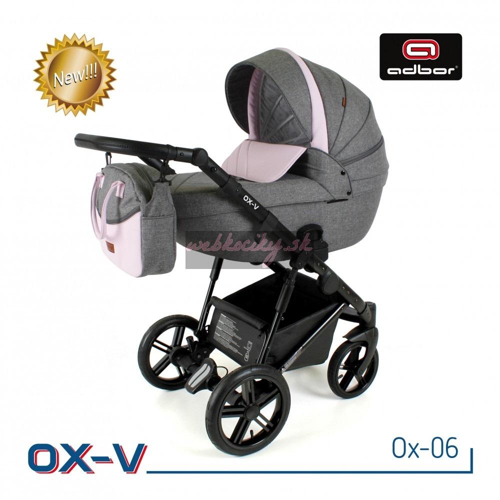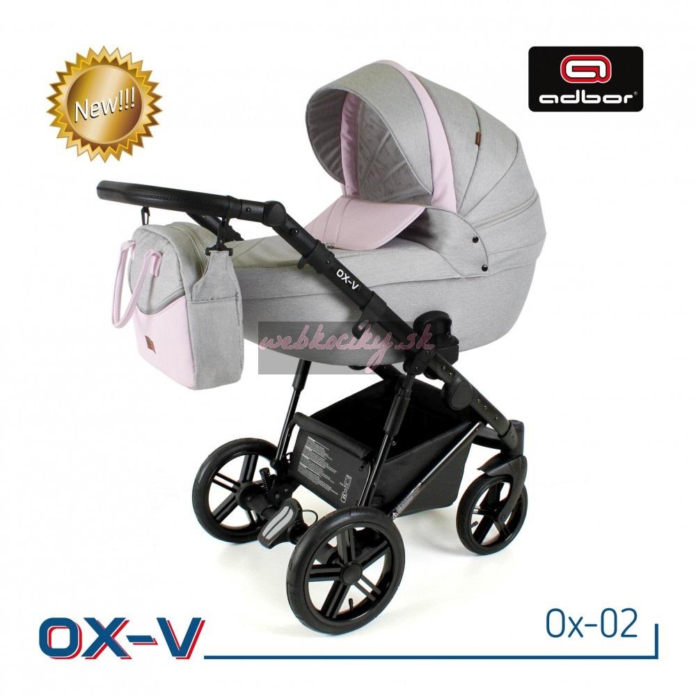 Spoločnosť Adbor zostavila špeciálnu edíciu. Krásne navrhnutý a štylizovaný kočík. Nová kolekcia kočíkov OX-V má pevnú hlinikovú konštrukciu. Kočík má kvalitné nafukovacie kolesá, ktoré poskytujú komfort pri jazde. Pohodlná a veľká nákupná taška je taktiež veľmi praktická v každodenných situáciách. Veľká priestranná vanička pre Vaše bábätko.