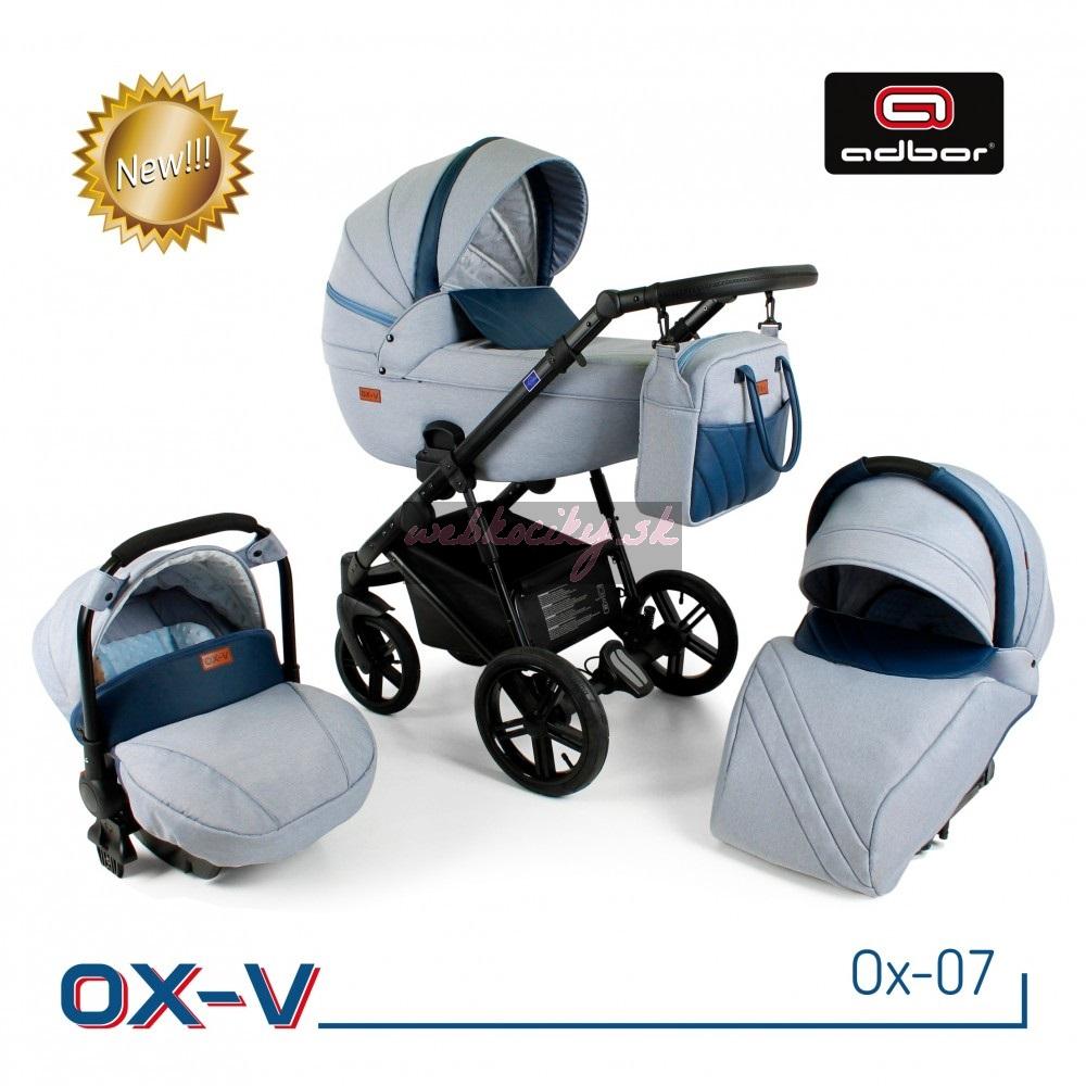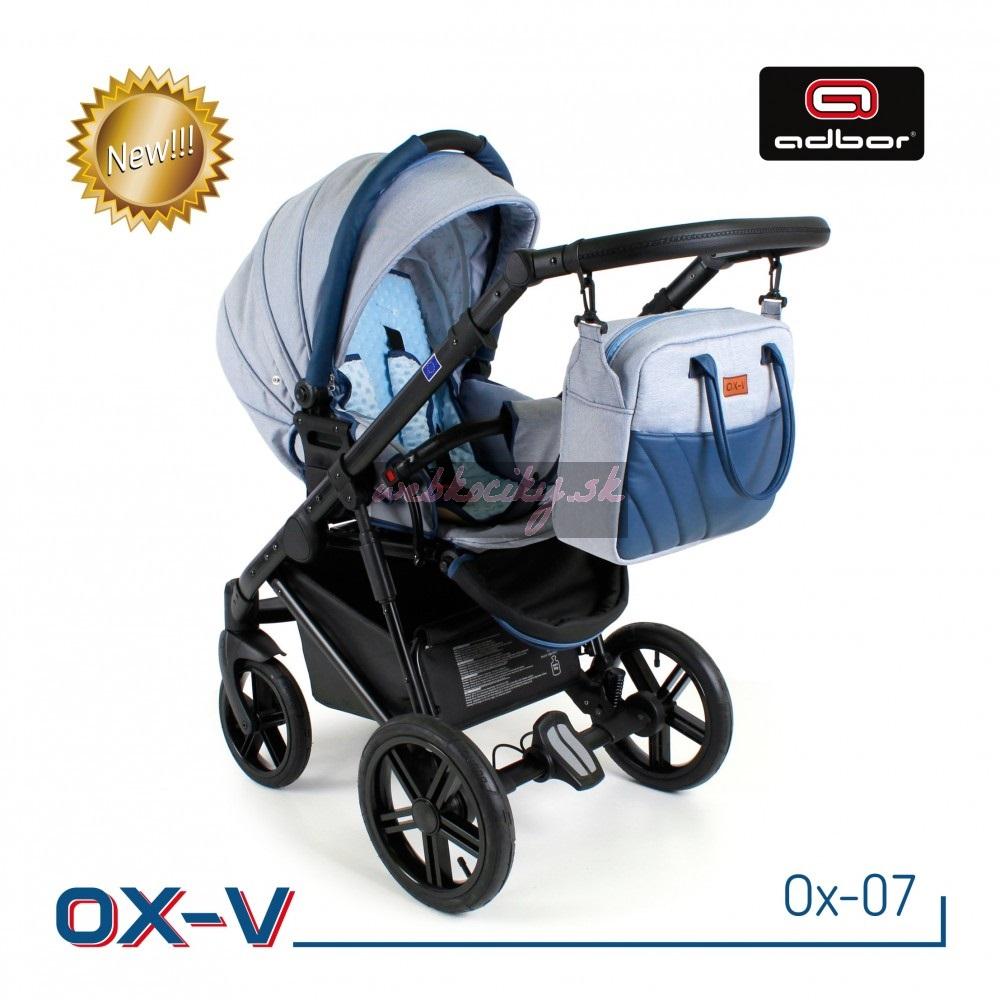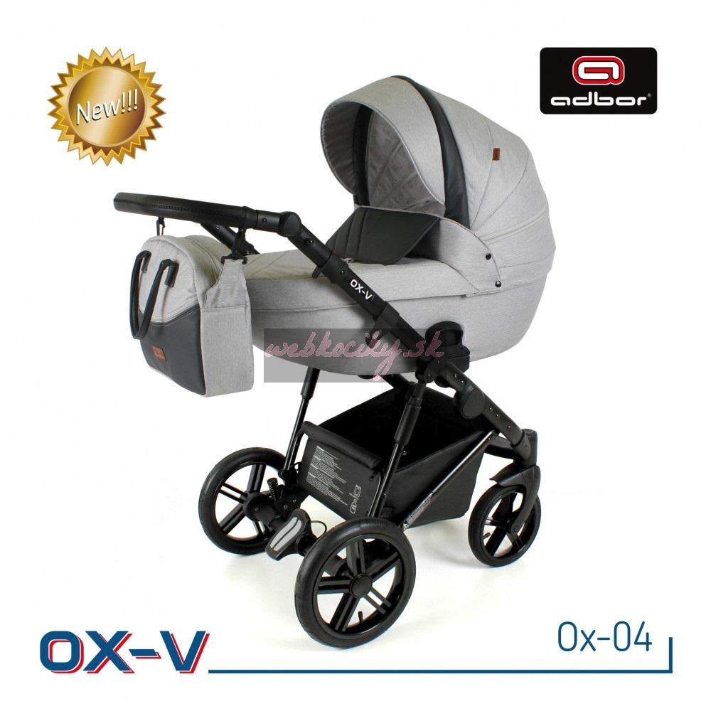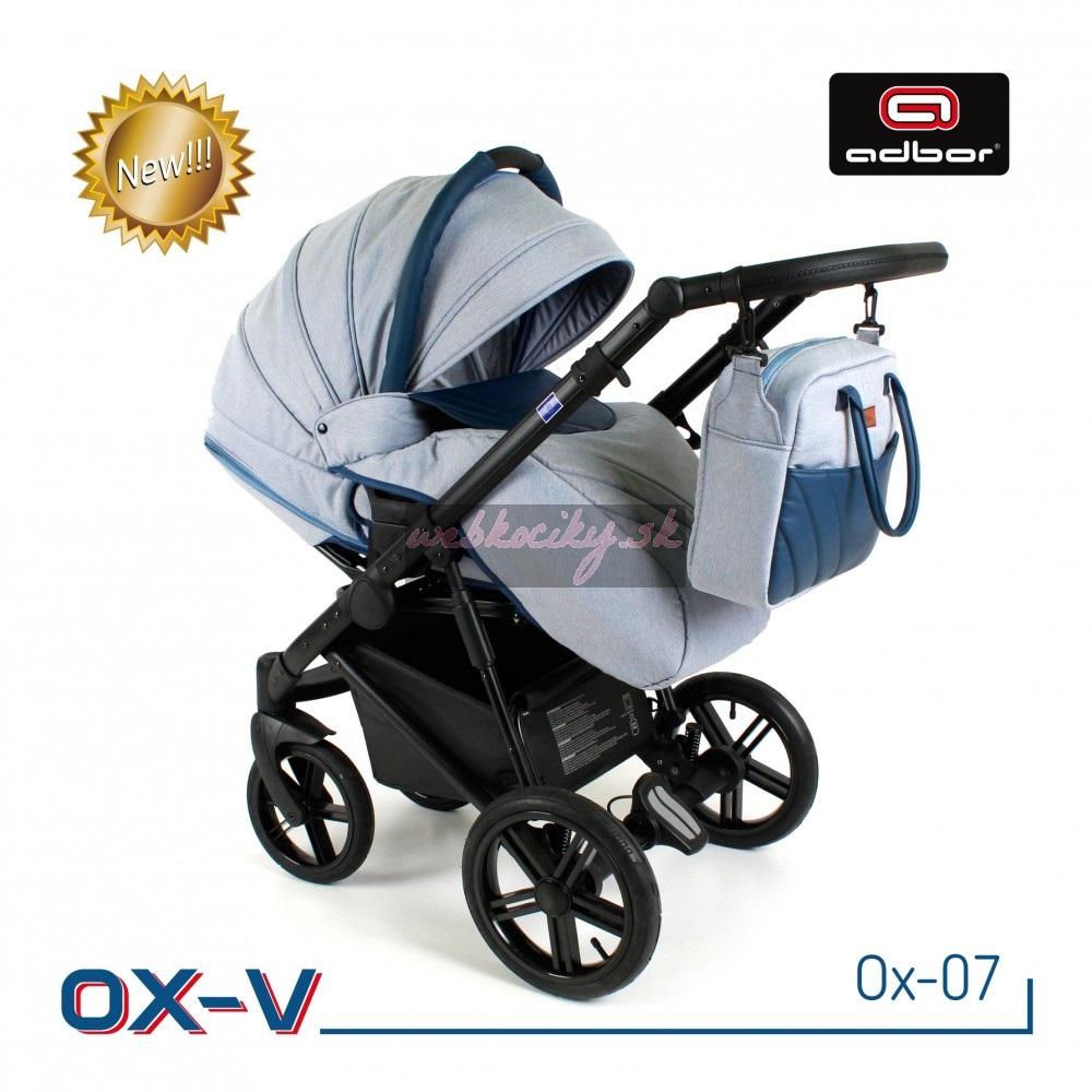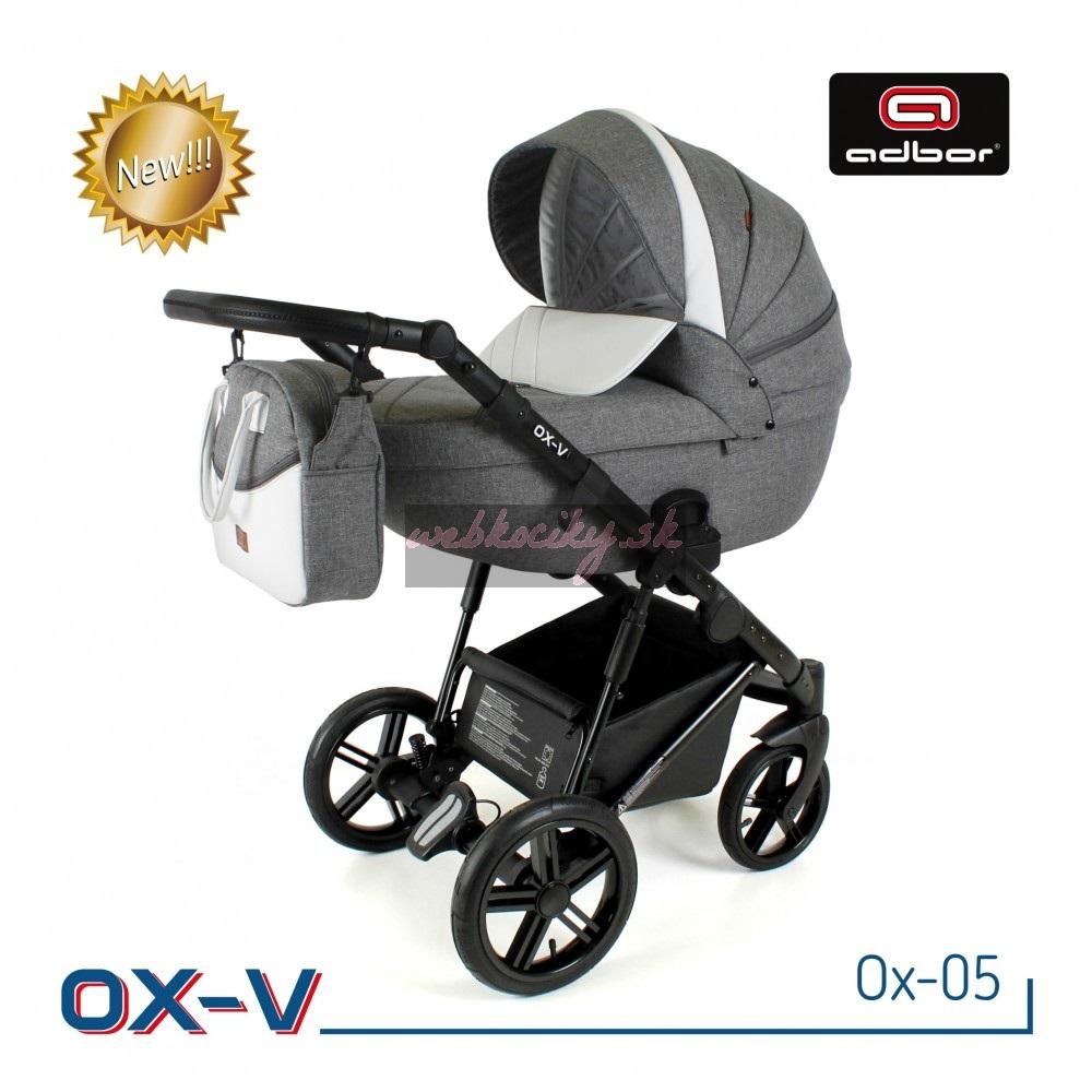 Spoločnosť Adbor zostavila špeciálnu edíciu. Krásne navrhnutý a štylizovaný kočík. Nová kolekcia kočíkov OX-V má pevnú hlinikovú konštrukciu. Kočík má kvalitné nafukovacie kolesá, ktoré poskytujú komfort pri jazde. Pohodlná a veľká nákupná taška je taktiež veľmi praktická v každodenných situáciách. Veľká priestranná vanička pre Vaše bábätko.