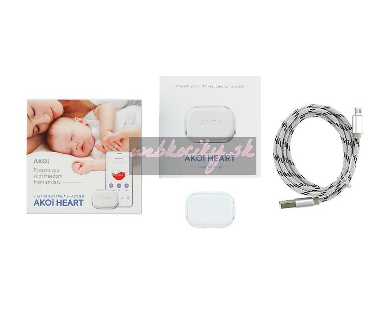 Monitor dychu: Monitoruje dýchanie a drobné pohyby bábätka 24 hodín. Keď vaše dieťa prestane dýchať na viac ako 10 sekúnd, AKOi Heart pošle alarm do vášho smartfónu. Je možné potvrdiť, či je zariadenie dobre pripojené k vášmu dieťaťu.