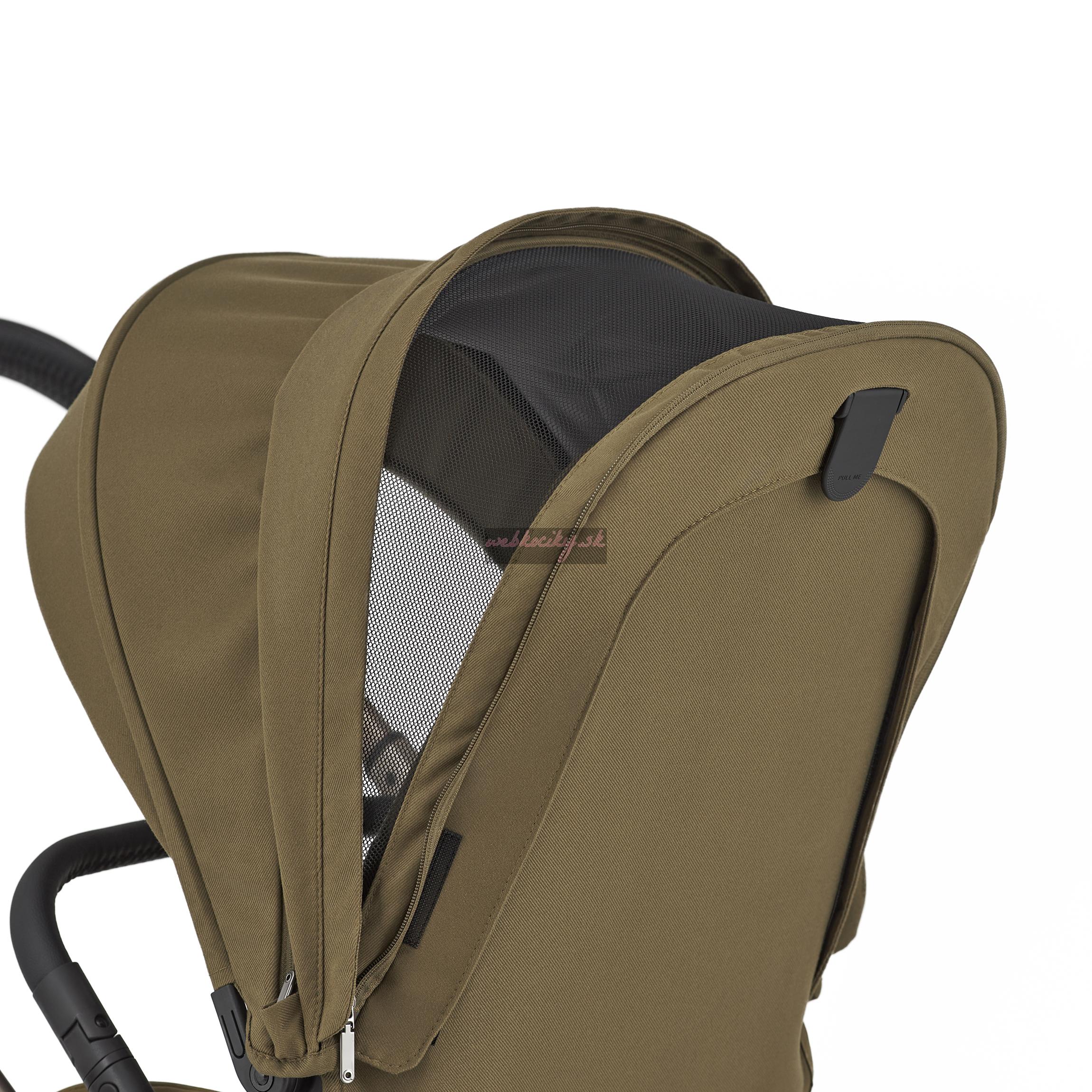 - Ventilačný systém - kočík má prepracovaný ventilačný systém, ktorý zaisťuje ventiláciu na všetkých potrebných miestach — od striešky a prednej časti vaničky až po opierku nôh a striešku športovej časti.
