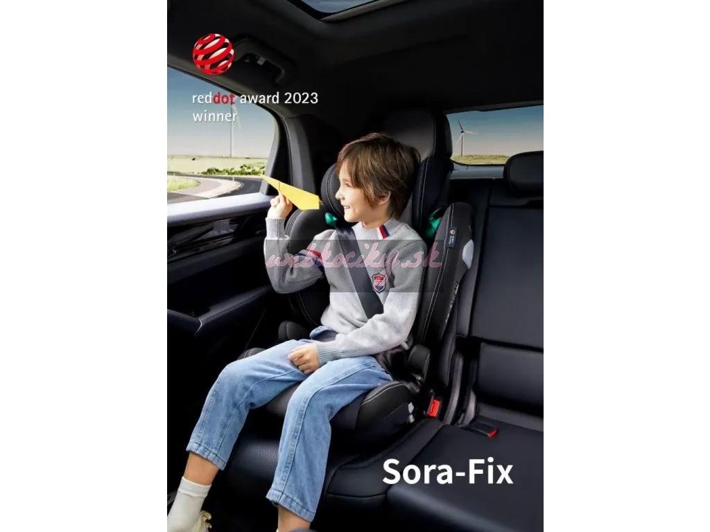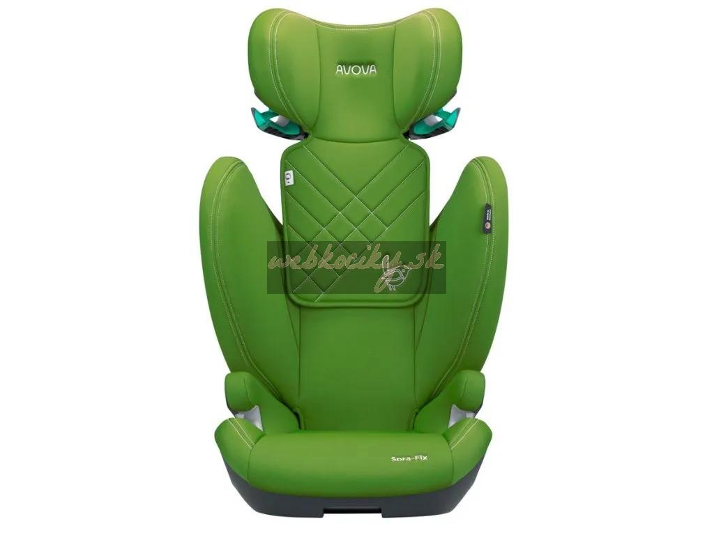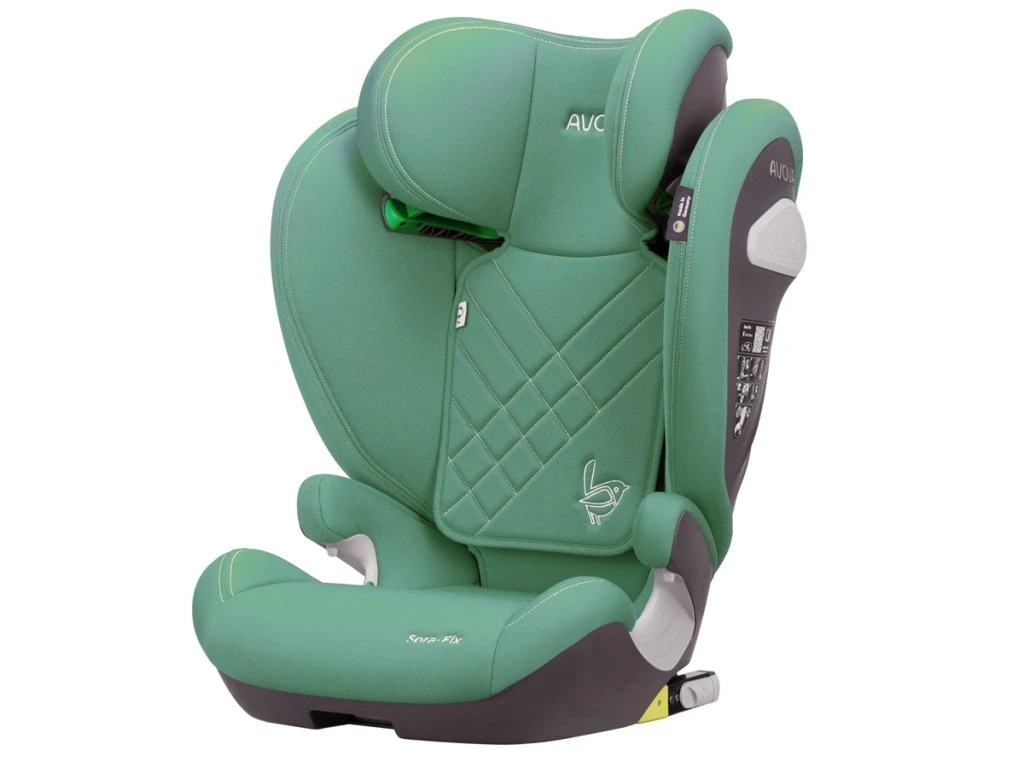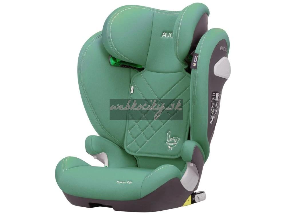 Veselá, pastelovo zelená, detská autosedačka Avova SORA-FIX je schválená podľa R-129 pre deti s výškou 100-150 cm, približne od 3 do 12 rokov. Je možné ju inštalovať v smere jazdy k ISOFIXu vozidla. Víťaz Reddot Design Award 2023. Víťaz kategórie 100-150 cm testu ADAC 2024.