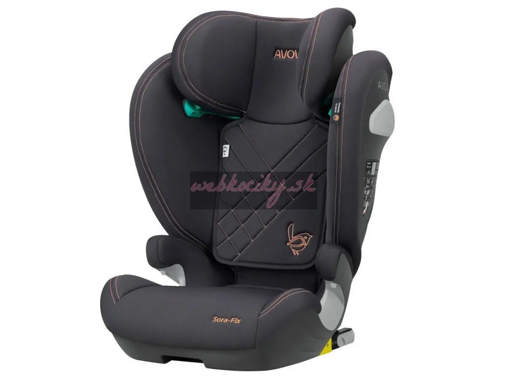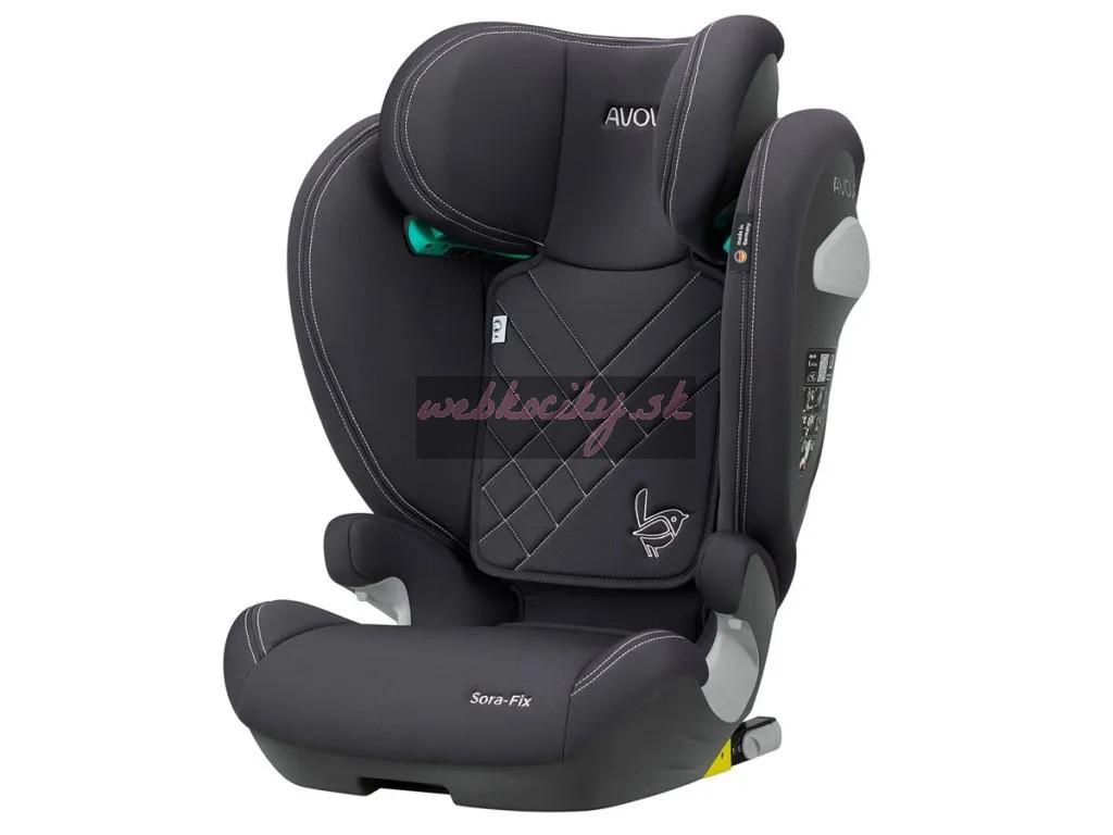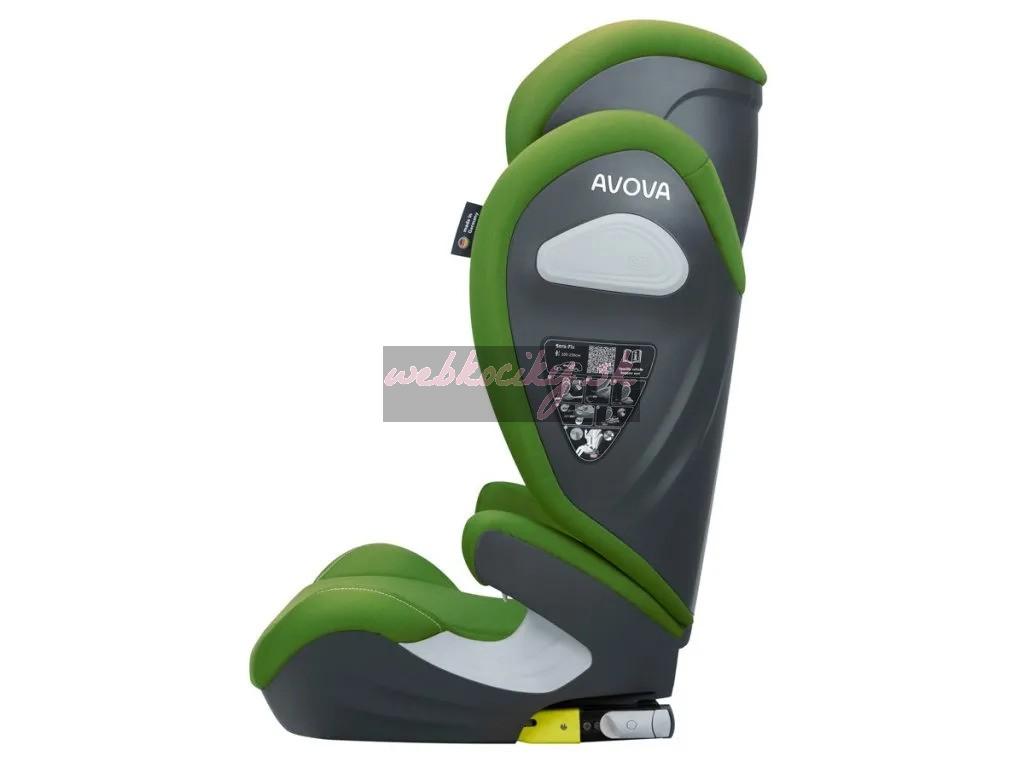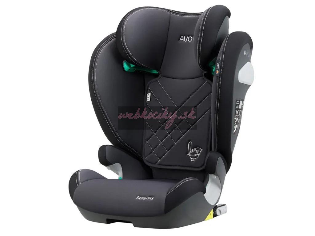 Veselá, pastelovo zelená, detská autosedačka Avova SORA-FIX je schválená podľa R-129 pre deti s výškou 100-150 cm, približne od 3 do 12 rokov. Je možné ju inštalovať v smere jazdy k ISOFIXu vozidla. Víťaz Reddot Design Award 2023. Víťaz kategórie 100-150 cm testu ADAC 2024.