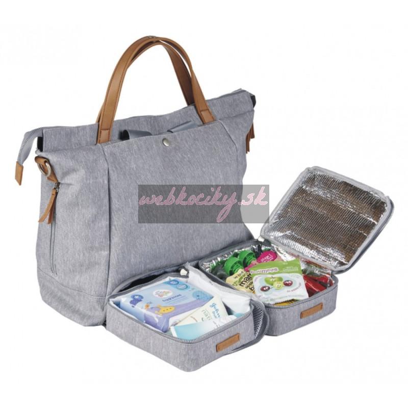 Štandardnou súčasťou tašky je tiež odnímateľný ramenný popruh, popruhy s klipmi na upevnenie na madlo kočiara, 2 obaly na fľašu s pitím a 2 samostatné vrecká, ktoré poslúžia na uschovanie krému, jedla, vlhčených obrúskov atď. Jedna z týchto priehradiek má termo úpravu, takže vaše jedlo zostane dlhšie teplé alebo chladné oproti ostatným vreckám v taške. Tieto vrecká sú šikovne navrhnuté a uschované v spodnej časti tašky tak, aby neprekážali pri manipulácii s ostatnými uloženými vecami v hlavnej časti tašky.