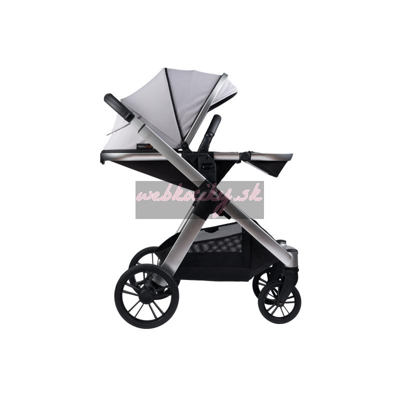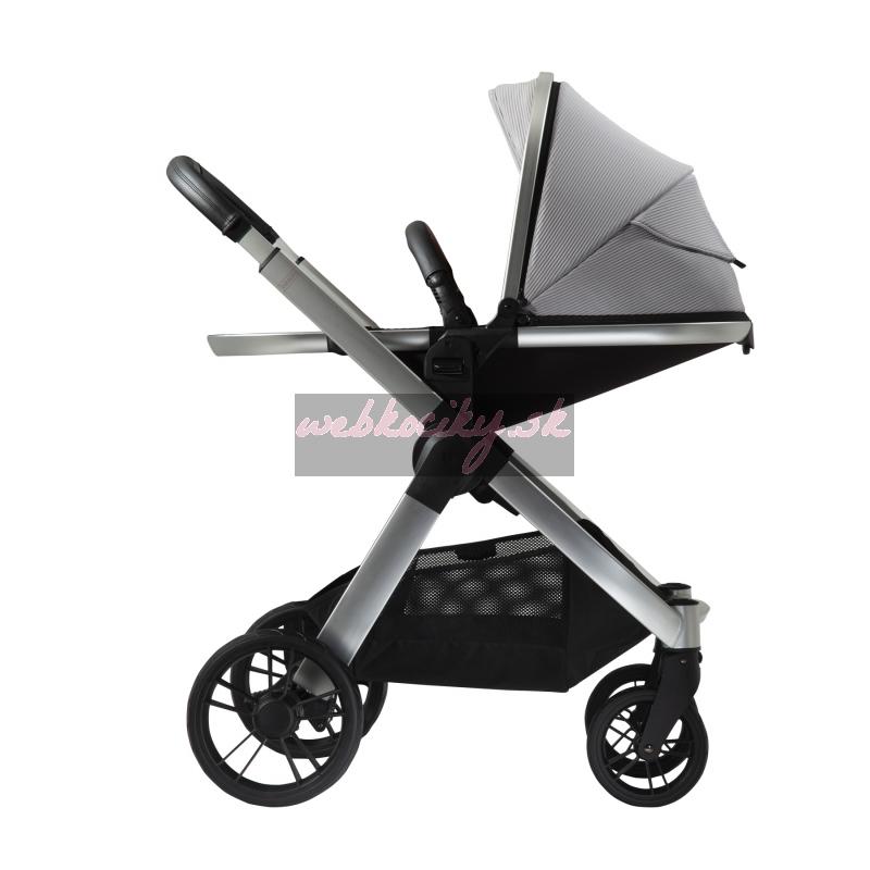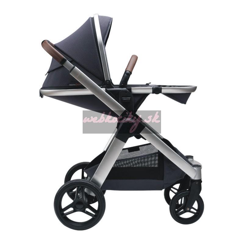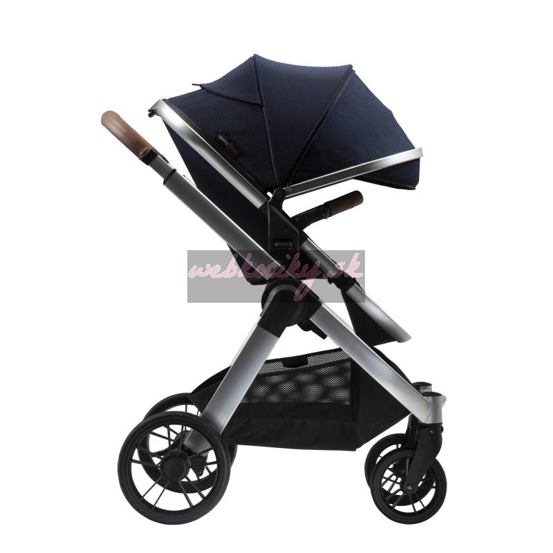 Výškovo polohovateľná rukoväť sa prispôsobí rodičom, okienko s priehľadom v strieške sedacej časti poskytne rodičom dokonalý prehľad o dieťati a slnečná clona dodatočne chráni pred slnečnými lúčmi. Luxusné zakončenie detailov z umelej kože a prémiová textília dodáva kočiaru výnimočný vzhľad.