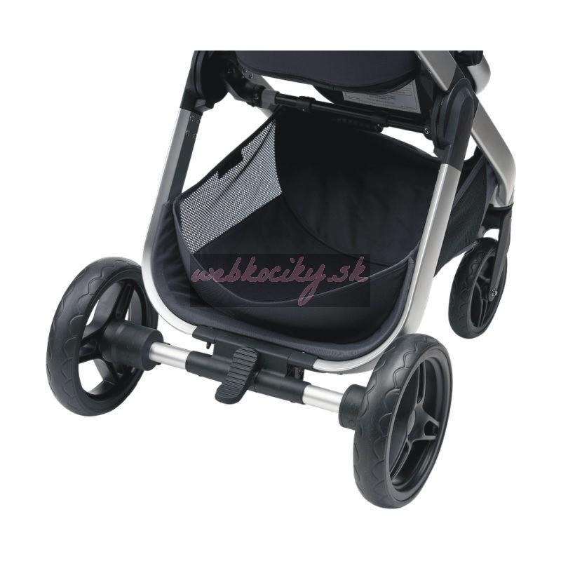 • priestranný kôš pod sedacou časťou s priehradkami pre uloženie pláštenky a pre adaptéry k autosedačke;