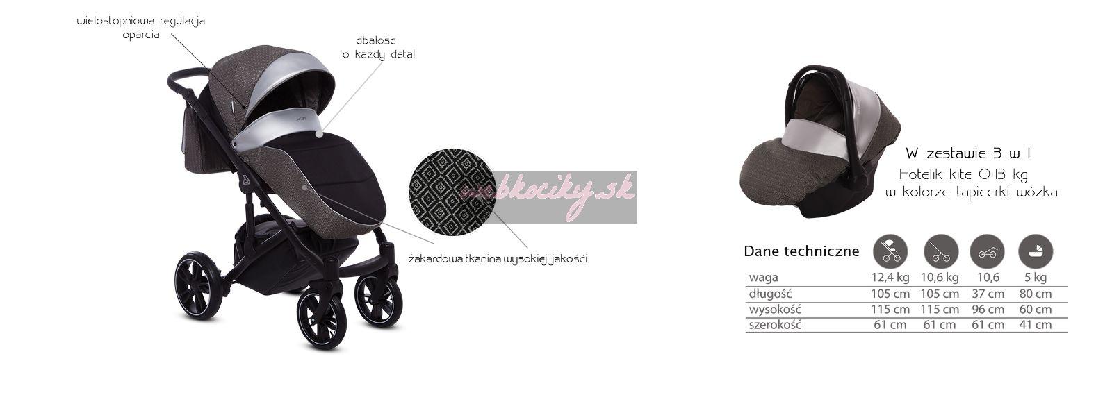 - konštrukcia kočíka je vyrobená z kvalitných materiálov, je pevná a odľahčená