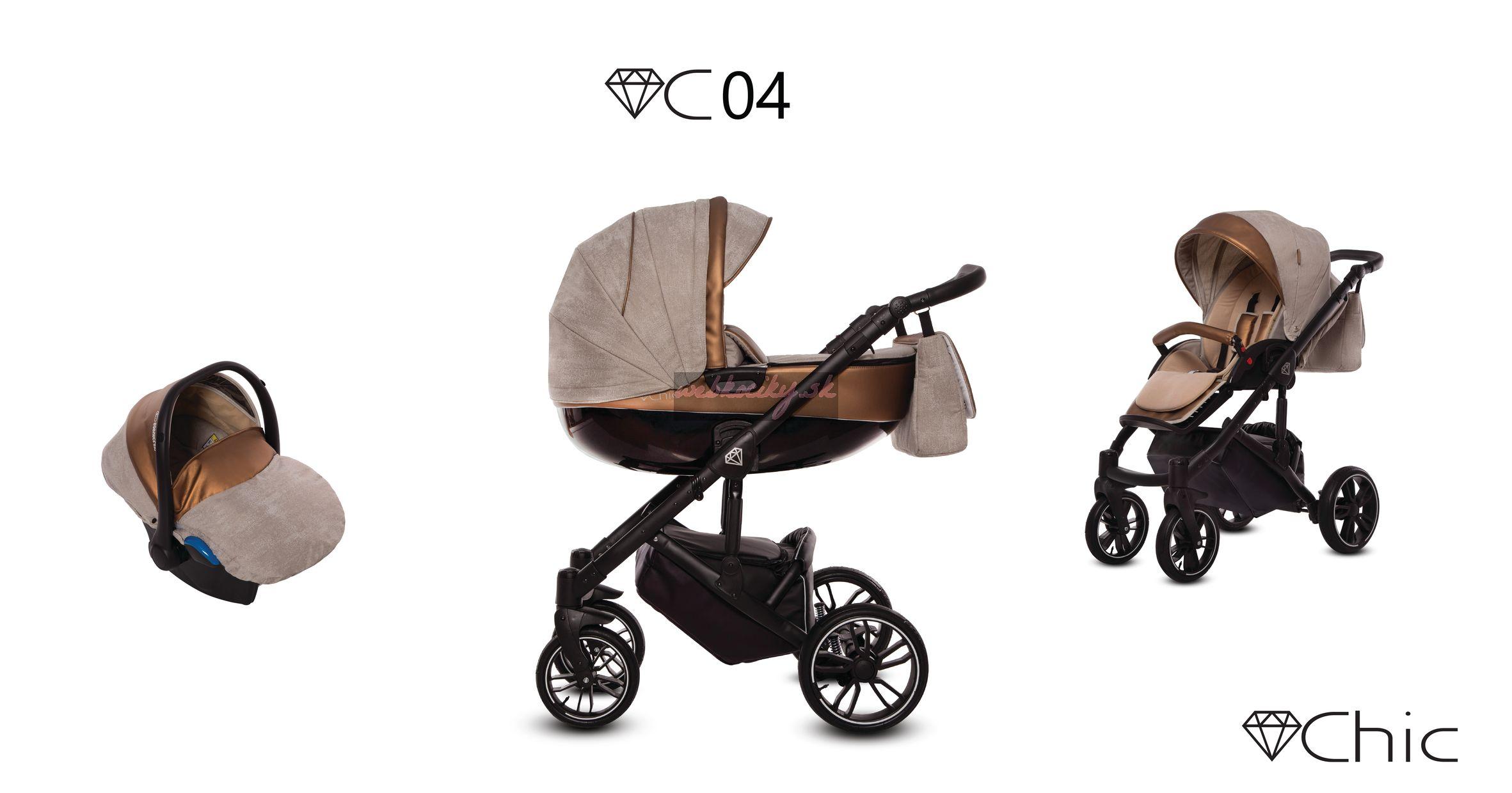 Spoločnosť Baby Active zostavila špeciálnu edíciu. Krásne navrhnutý a štylizovaný kočík. Nová kolekcia kočíkov Baby Active Chic má pevnú stabilnú konštrukciu. Kočík má kvalitné ložiskové nafukovacie kolesá, ktoré poskytujú komfort pri jazde. Pohodlná a veľká nákupná taška je taktiež veľmi praktická v každodenných situáciách. Veľká priestranná vanička pre Vaše bábetko.