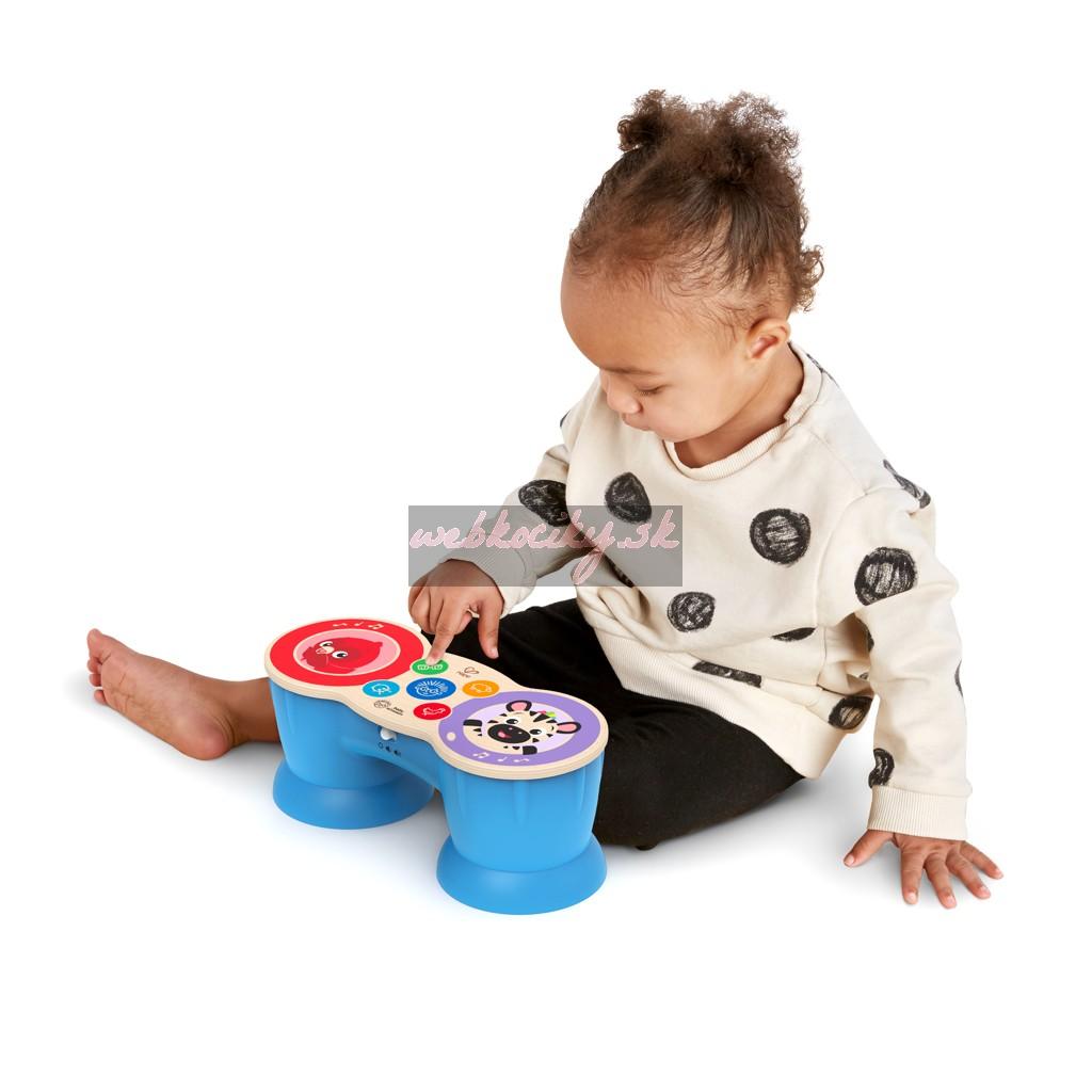 Vychutnajte si vzrušujúce hudobné rytmy spolu s dieťaťom a bubnami Baby Einstein™ Upbeat Tunes™ Magic Touch™. S technológiou Magic Touch™ môže vaše dieťa ľahko objavovať klasické melódie na bubne z pravého dreva a prepínať medzi bongami, bubnami, zvukmi kuriatok a ovečiek. Deti vo veku od 6 mesiacov môžu nájsť svoj rytmus a hrať svoje vlastné pesničky, alebo stlačením Einsteinovho tlačidla aktivovať 6 nastavených populárnych melódií. Táto hračka batoľatám pomáha rozvíjať motorické zručností a tvorivé sebavyjadrenie.