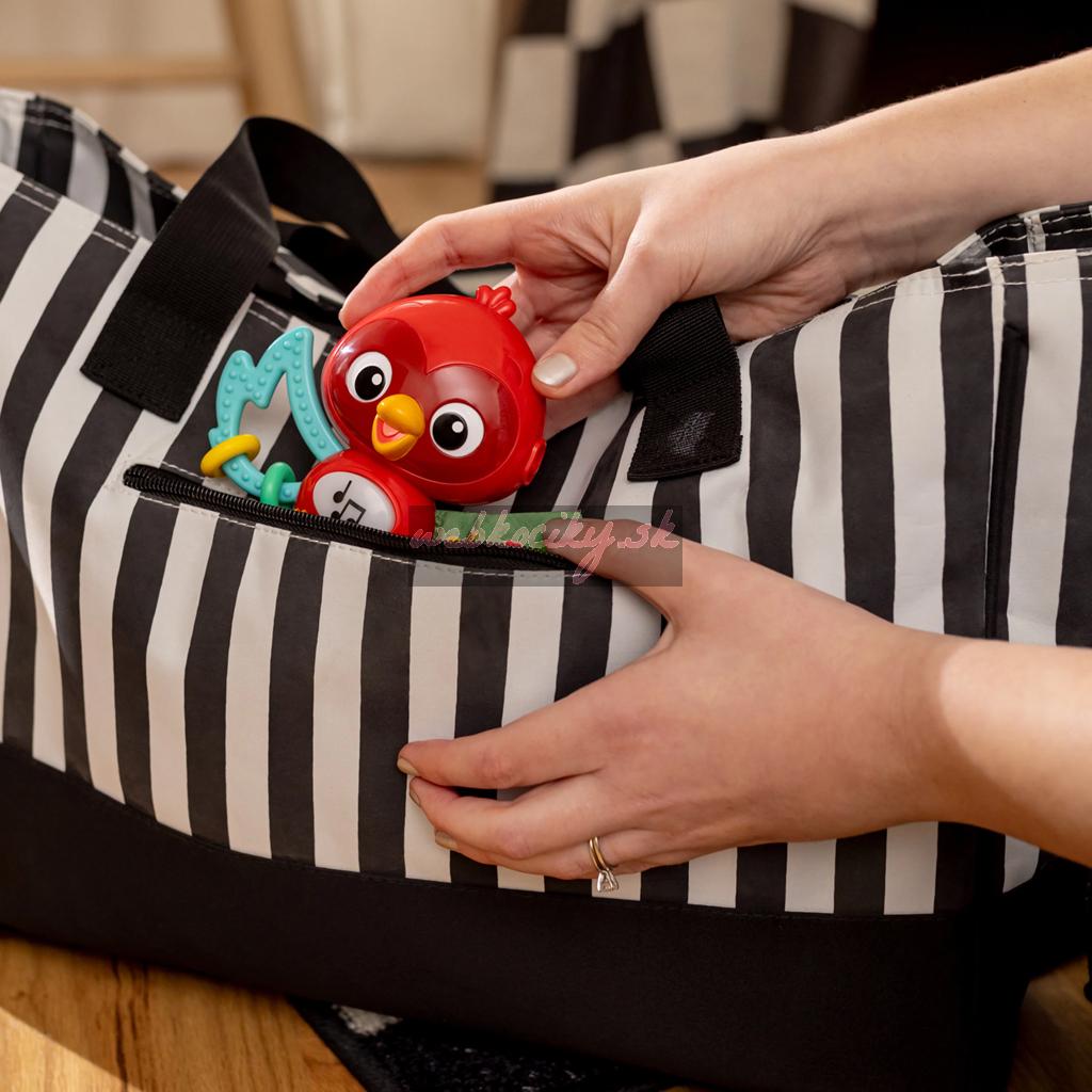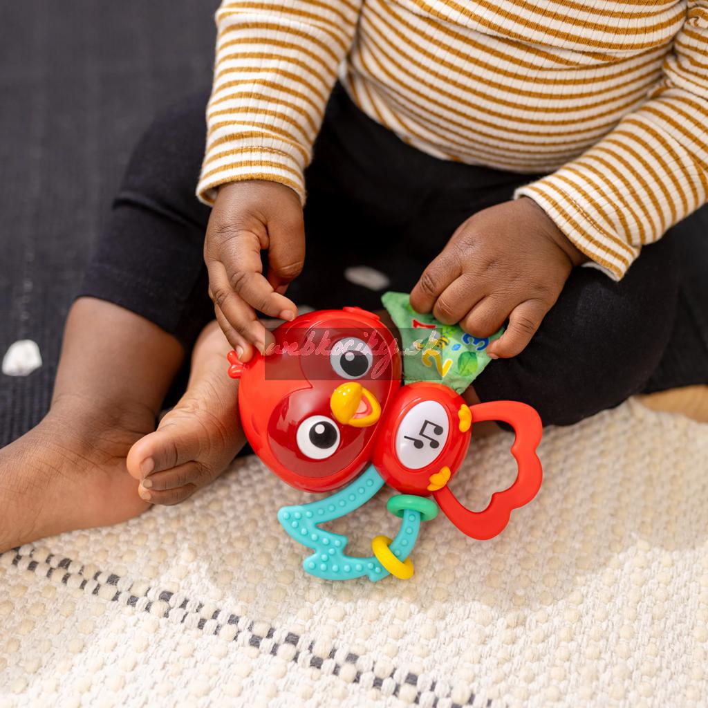 Táto pútavá hračka zabaví dieťatko na cestách, keď skúma jedinečné textúry, klasické melódie, zvuky vtáčikov a svetielka. Dieťatko si môže rozvíjať jemné motorické zručnosti a objavovať príčinu a následok, keď stláča a skúma vlastnosti hračky.