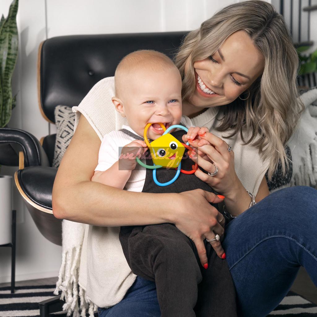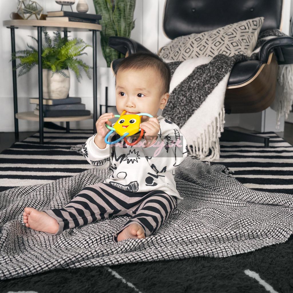 Priateľská tvár hviezdice víta dieťatko s úsmevom a pri zatrasení zazvoní, aby zaujala a potešila dieťatko, keď sa učí príčinu a následok. Táto hračka na prerezávanie zúbkov, ktorá sa ľahko drží a trasie, sa stane obľúbeným upokojujúcim kamarátom na úľavu pri prerezávaní zúbkov a bude sa hrať doma alebo na cestách.