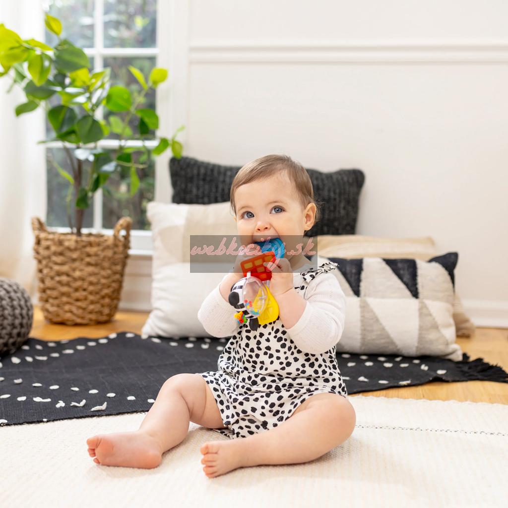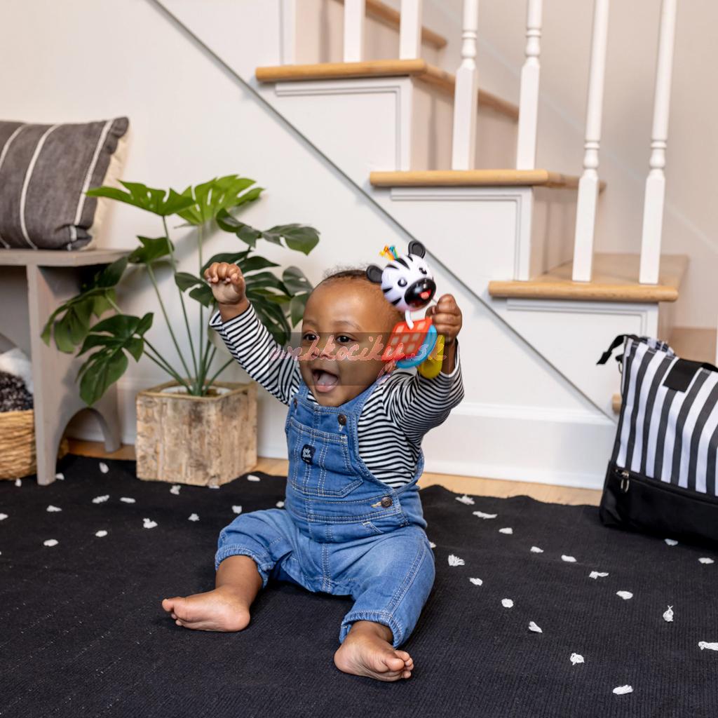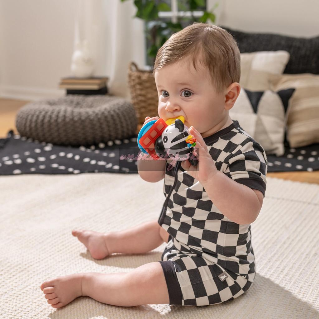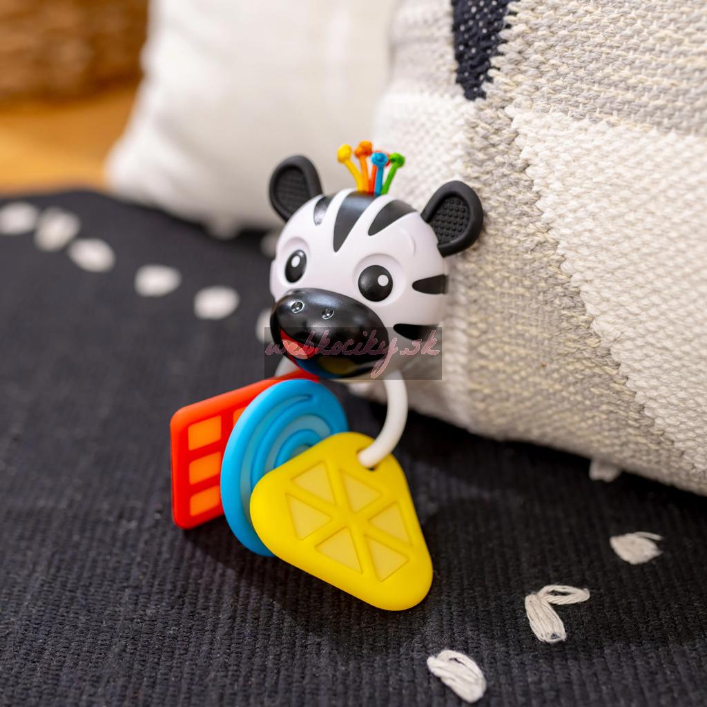 BABY EINSTEIN Hryzačka s hrkálkou zebra Zen™ Shake-a-Shape bez BPA 0m+