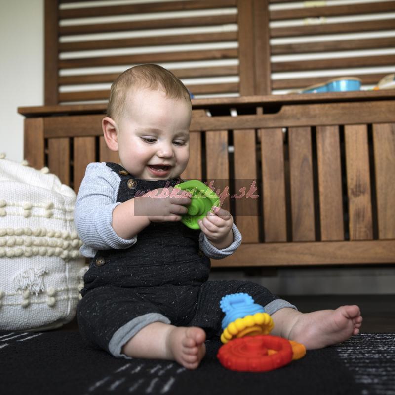 - Stohovacie hryzačky s rôznou textúrou, ktoré sú bezpečné pre malé zúbky.