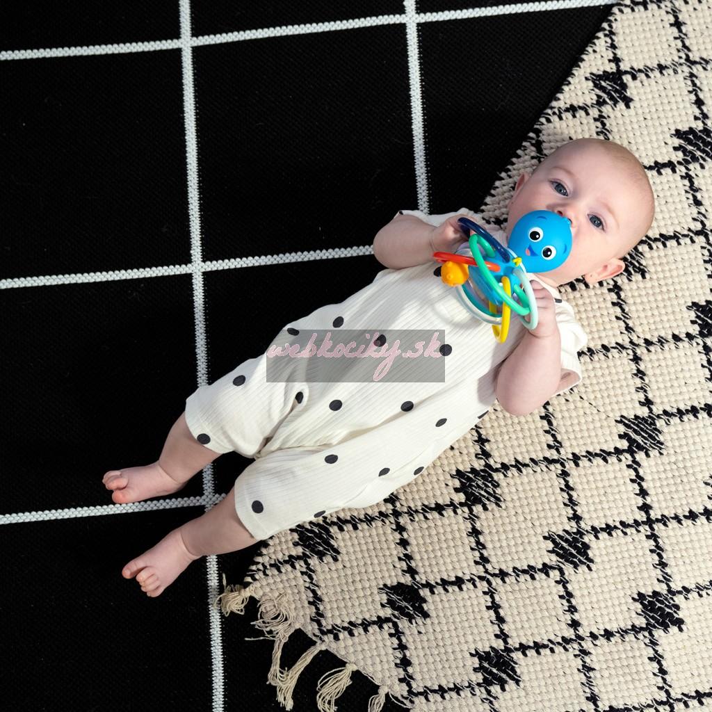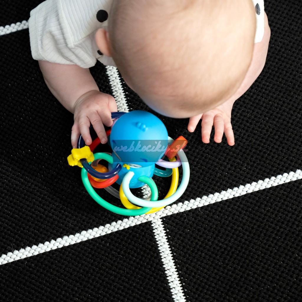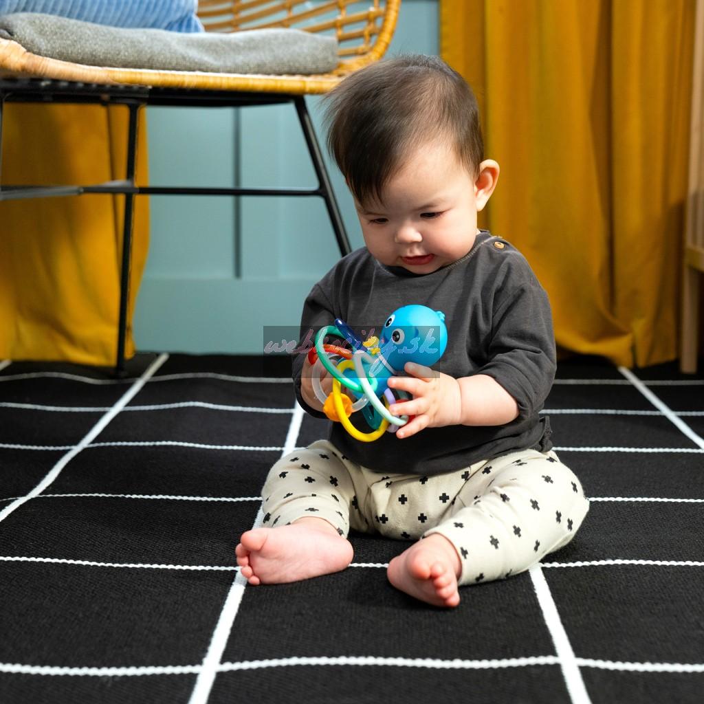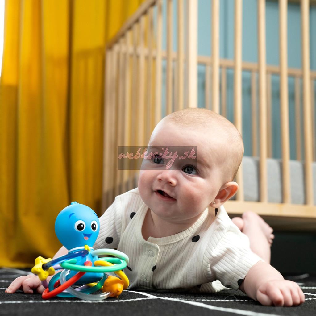 Hračka na hryzenie a hrkálka Baby Einstein Ocean Explorers pomáha upokojiť boľavé ďasná a stimulovať zmysly dieťaťa vďaka rôznym textúram, jasným farbám a skrytej hrkálke. Toto farebné hryzátko podporuje rozpoznávanie farieb a skrytá hrkálka odmeňuje zvedavosť dieťaťa pri každom zatrasení.