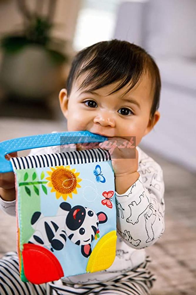 Vďaka mäkkej textúre a tvaru sa dieťatku ľahko drží aj v malých rúčkach. Vrúbkované textúry na rohoch knižky sú navrhnuté tak, aby masírovali boľavé ďasná počas prerezávania prvých zúbkov. Vďaka ľahko uchopiteľnej rukoväti si vaše dieťa môže vziať túto farebnú knižku všade so sebou.