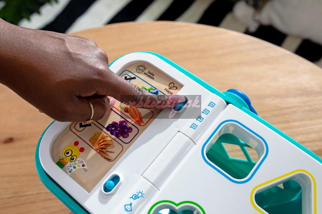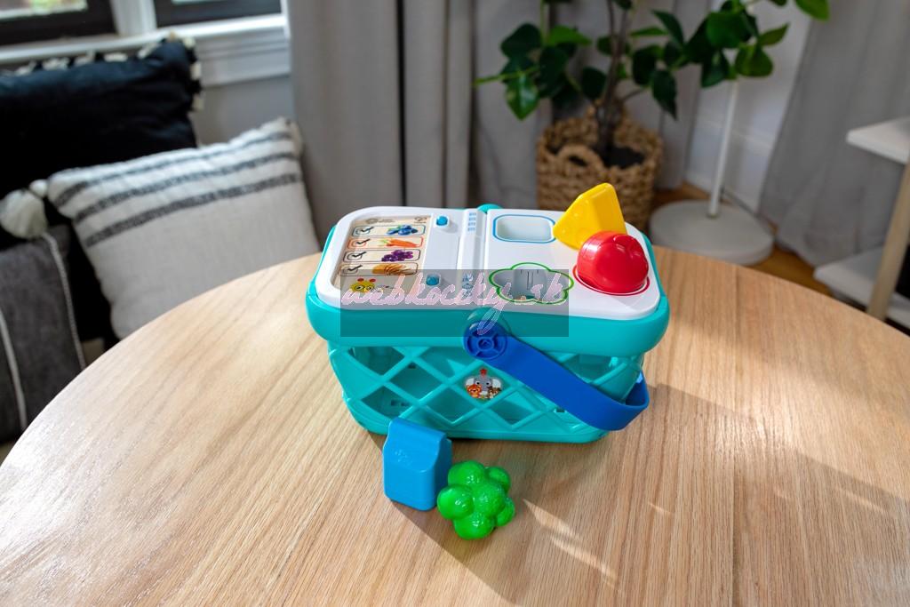 - Pomôžte dieťaťu naučiť sa skutočné koncepty, ako sú tvary, farby a potraviny, s nákupným košíkom od Baby Einstein Magic Touch.