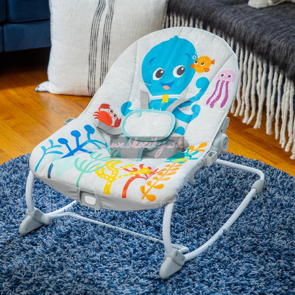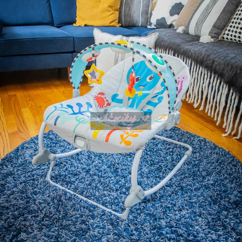 Baby Einstein Ocean Explorers Kick to It Opus Hudobné lehátko od dojčiat po batoľa sa premení z detského hojdacieho sedadla na stacionárne kreslo a hojdačku pre batoľatá, aby poskytla bábätku pútavé a pohodlné miesto na oddych a objavovanie.