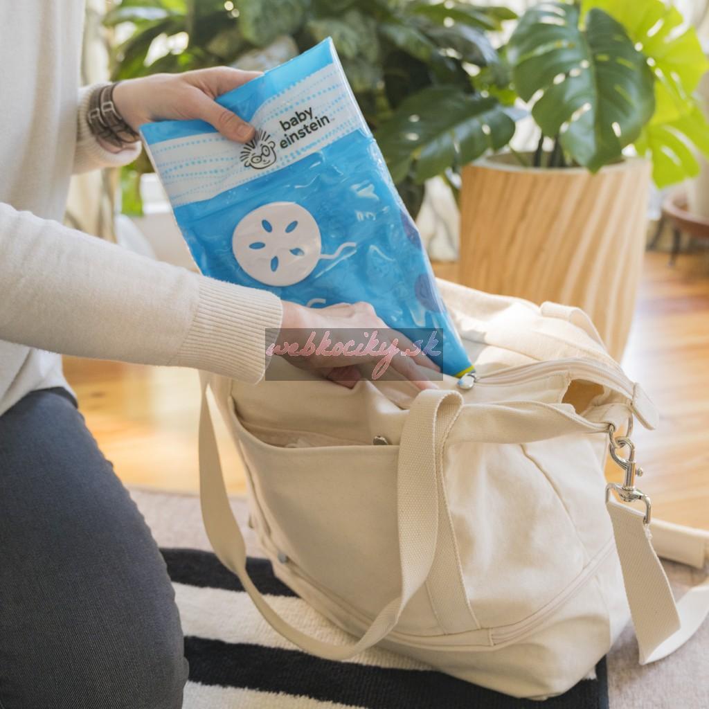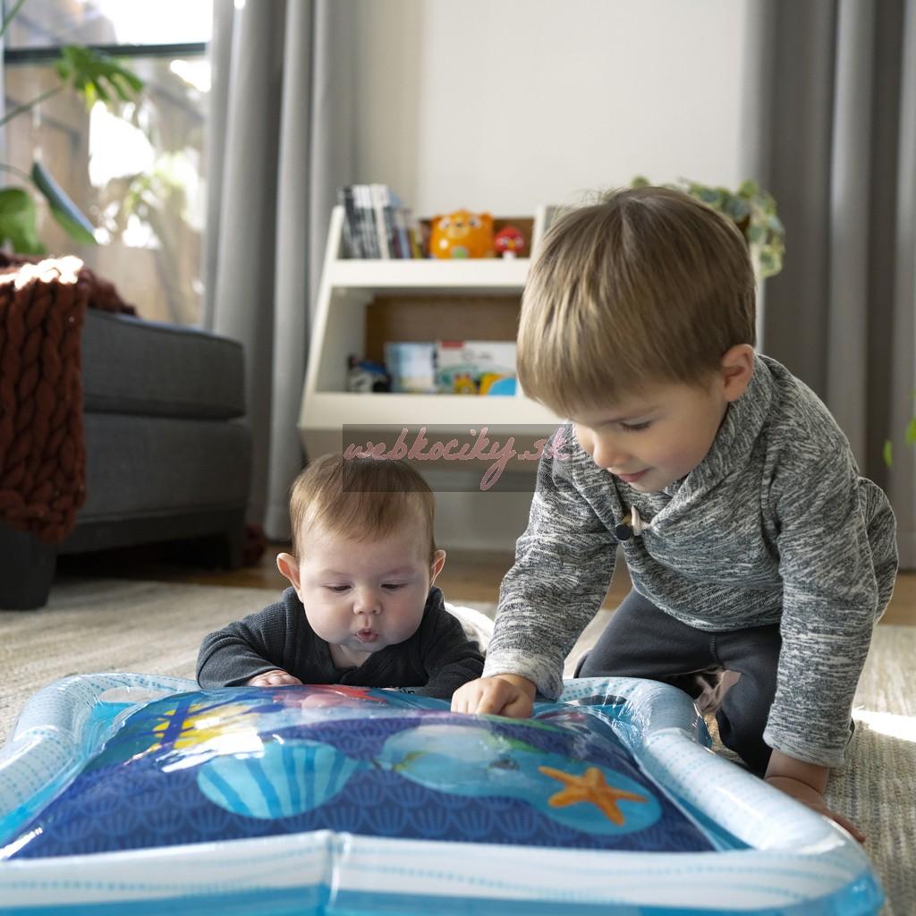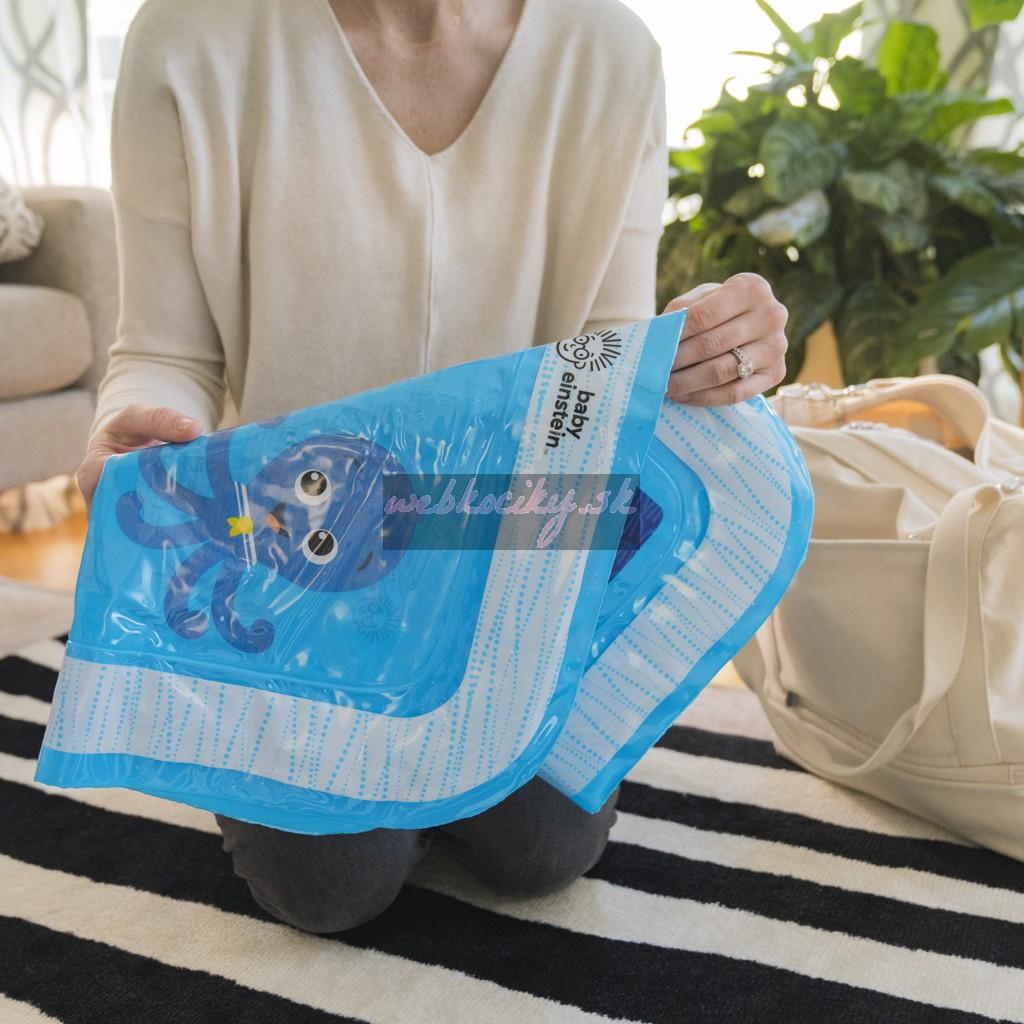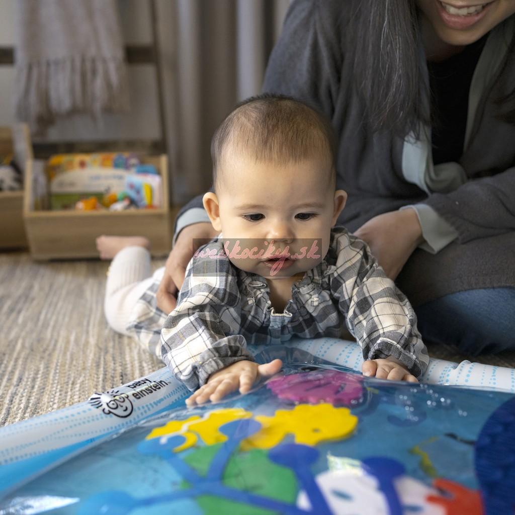 Prieskum podmorského sveta je v rukách vášho dieťatka s vodnou podložkou Opus's Ocean of Discovery™, ktorá obsahuje chobotničku Opus od Baby Einstein. Jednoducho naplňte stred hracej podložky vodou a vonkajší okraj nafúknite vzduchom. Počas hry v sede a na brušku môže bábätko pracovať na rozvoji svalov a zároveň môže vidieť ako sa 6 plávajúcich morských tvorov pohybuje pod hladinou. Táto praktická aktivita, ktorá je ideálna pre prirodzene zvedavé deti vo veku od novorodencov až po staršie deti, pomáha pochopiť princíp príčiny a následku, keď sa dotýkajú podložky a sledujú plávanie podmorských tvorov. Pomáha zaujať a zabaviť dojčatá a batoľatá a zároveň podporuje rozvoj hrubej motoriky. Čistenie je jednoduché — stačí vypustiť vodu a vzduch, utrieť podložku a zložiť ju. Používajte ju doma alebo vezmite so sebou na dobrodružstvá, aby vaše dieťa mohlo objavovať zázraky vody a zmyslové hry, nech ste kdekoľvek.
