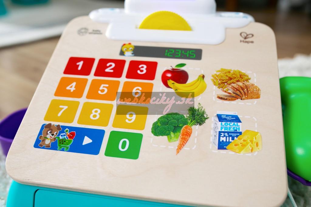 - Táto farebná pokladnica s drevom s certifikátom FSC odmeňuje dieťa svetlami, hudbou, zvukmi pokladnice a frázami.