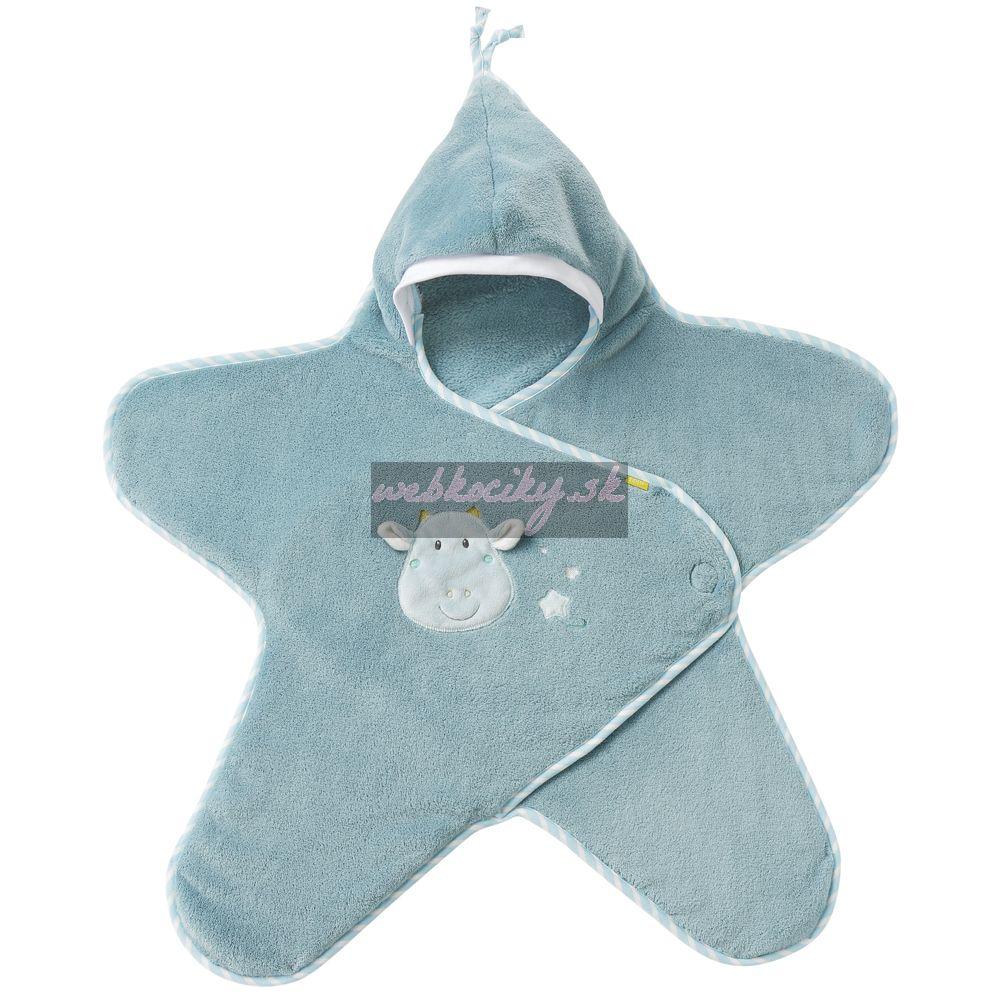 Roztomilá zavinovačka v tvare hviezdy pre Vaše malé zlatíčko. Je zhotovená z príjemného na dotyk mimoriadne mäkkého materiálu, ktorý je ohľaduplný voči jemnej pokožke dieťaťa. Vďaka kapucňu je chránená aj hlavička dieťatka, ktorá je najmä po kúpeli citlivá na schladenie .. Roztomilý motív dráčika si získa záujem každého zvedavého dieťaťa.