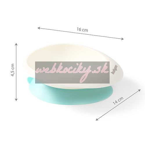 Dvojdielny set na jedenie z mäkkého plastu bez BPA je veľmi praktický, ľahko uchopiteľný a protišmykový. Set obsahuje misku s prísavkou a lyžičku. Oválny tvar misky uľahčuje naberanie jedla, zatiaľ čo prísavka na miske zabraňuje jej pohybu po stole a tým rozliatiu jedla a pomáha udržiavať veci čisté. Vďaka širokému okraju misky nie je žiadny problém držať misku stabilne v ruke. Ergonomická lyžička dokonale padne do rúk vášho dieťatka.