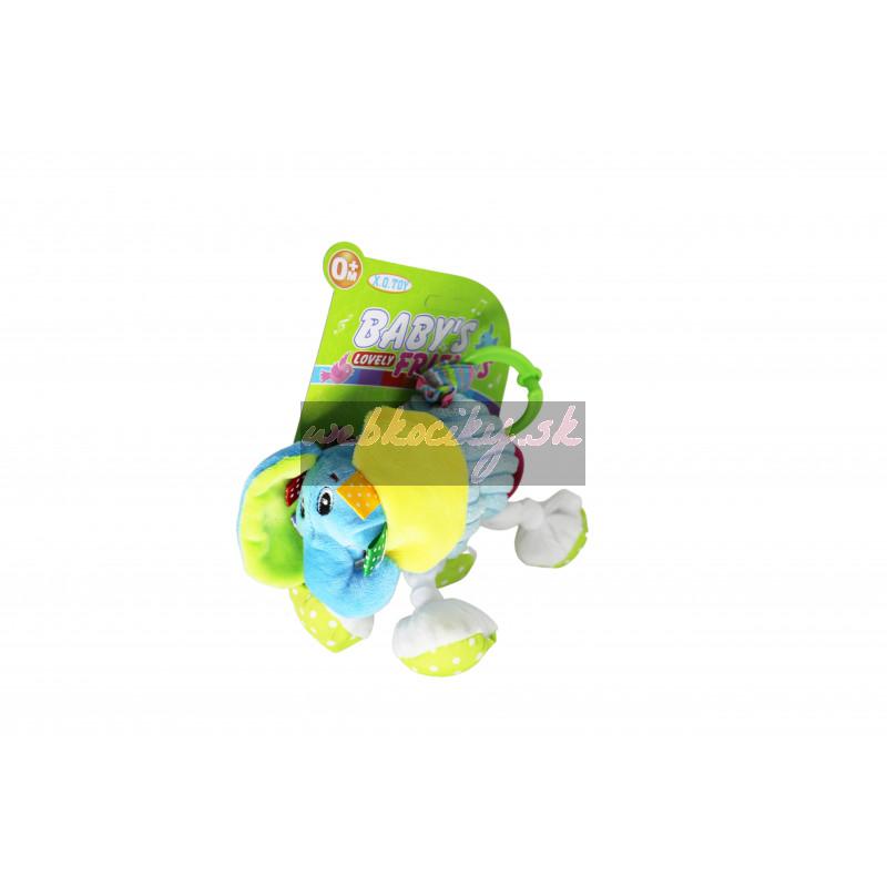 Kolekcia plyšových hračiek s úchytom na zavesenie do kočíka / postieľky stimuluje rozvoj zmyslov dieťaťa. Intenzívne farby priťahujú pozornosť dieťaťa. Hračka je ľahká a vydáva príjemné zvuky.