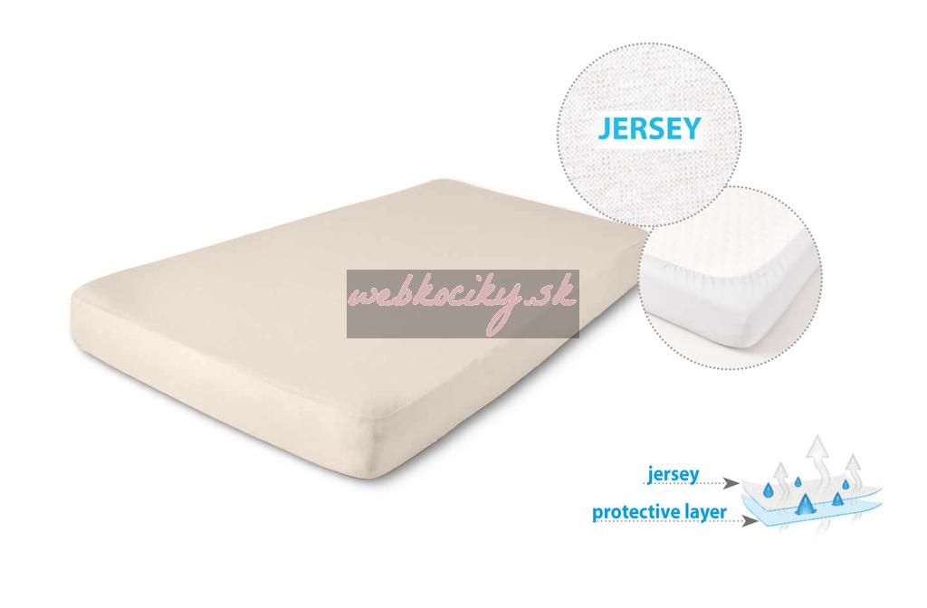 Jersey je klasická bavlnená plachta s inovatívnym systémom všívania gumy v tuneli, vďaka čomu plachta dokonale prilieha k matracu a zabraňuje pretrhnutiu gumy. Vrchná vrstva plachty je vyrobená z mäkkej látky zabraňujúcej podráždeniu pokožky, ale spodná vrstva je vyrobená z PVC.