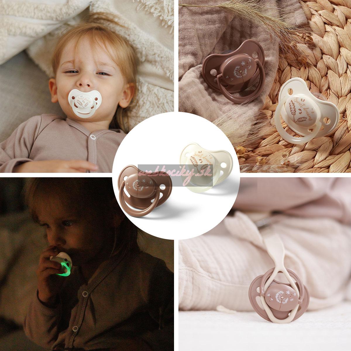 - Denný a nočný cumlík – v balení nájdete jeden klasický a jeden so svietiacou rúčkou, ktorý ľahko nájdete aj v tme
