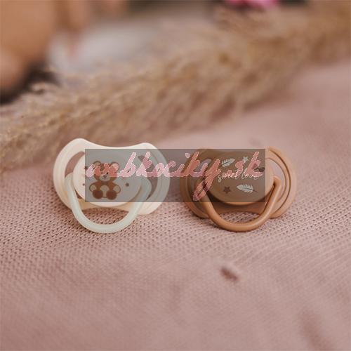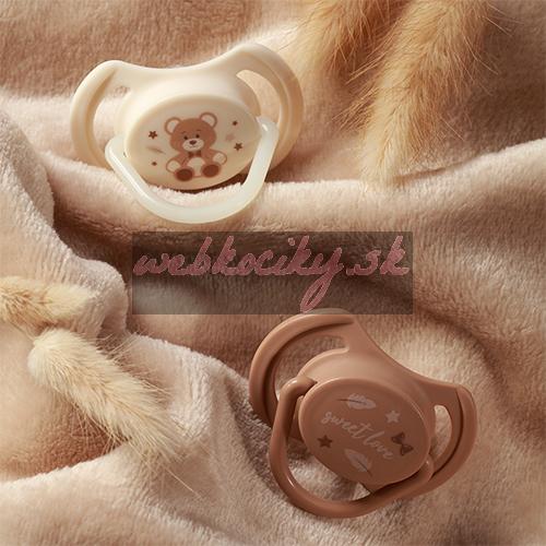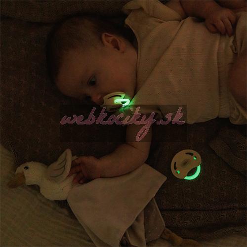 - Denný a nočný cumlík – v balení nájdete jeden klasický a jeden so svietiacou rúčkou, pripravený upokojiť dieťa aj v noci