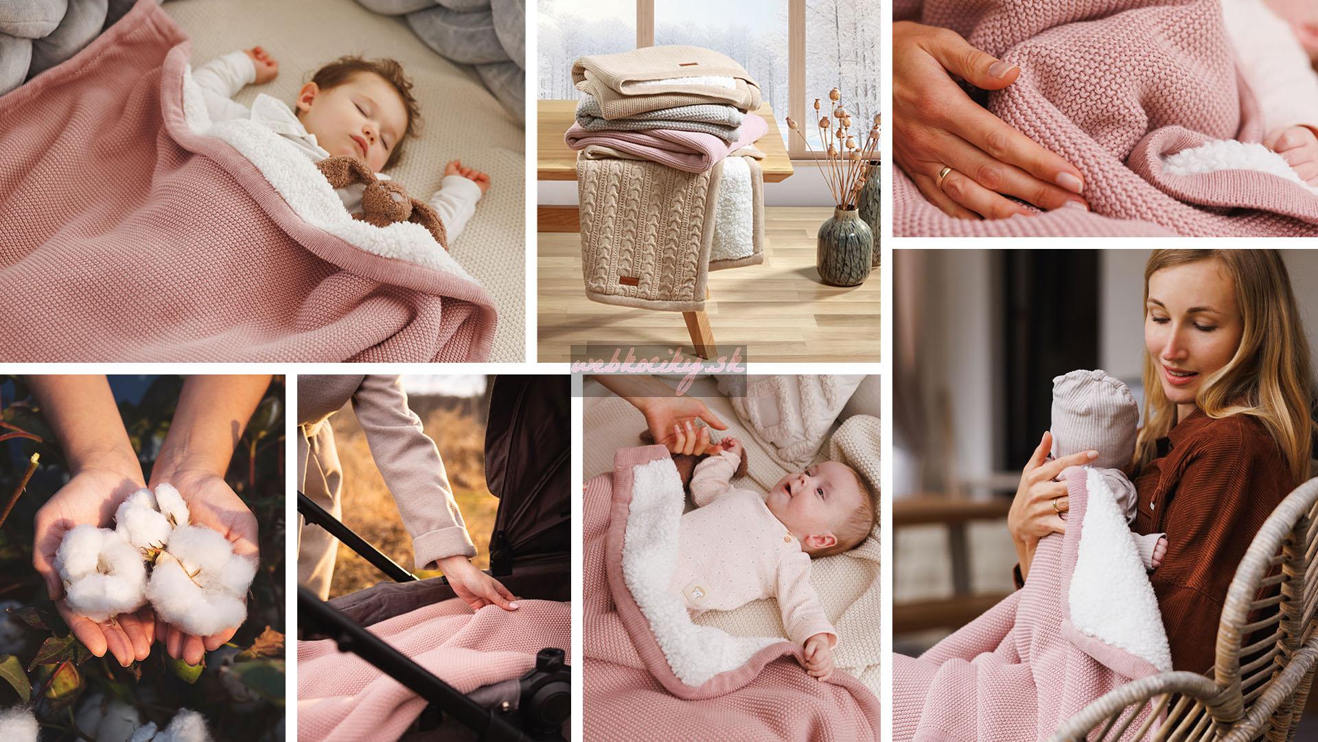 Táto dvojvrstvová deka je ideálnou voľbou pre chladnejšie dni. Vrchná vrstva je vyrobená z prírodnej bavlny – jemnej a bezpečnej pre citlivú pokožku dieťaťa. Spodná strana je podšitá hustou sherpa látkou (flísom), ktorá pripomína jahňaciu kožušinu a výborne izoluje teplo. Deka nedráždi pokožku, vytvára pocit bezpečia a pohodlia, takže vaše dieťa sa bude cítiť ako v mäkkom, teplom obláčiku. Ideálna pre novorodencov, dojčatá aj staršie deti – doma, na prechádzkach či na cestách.