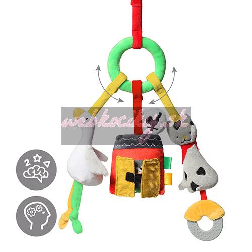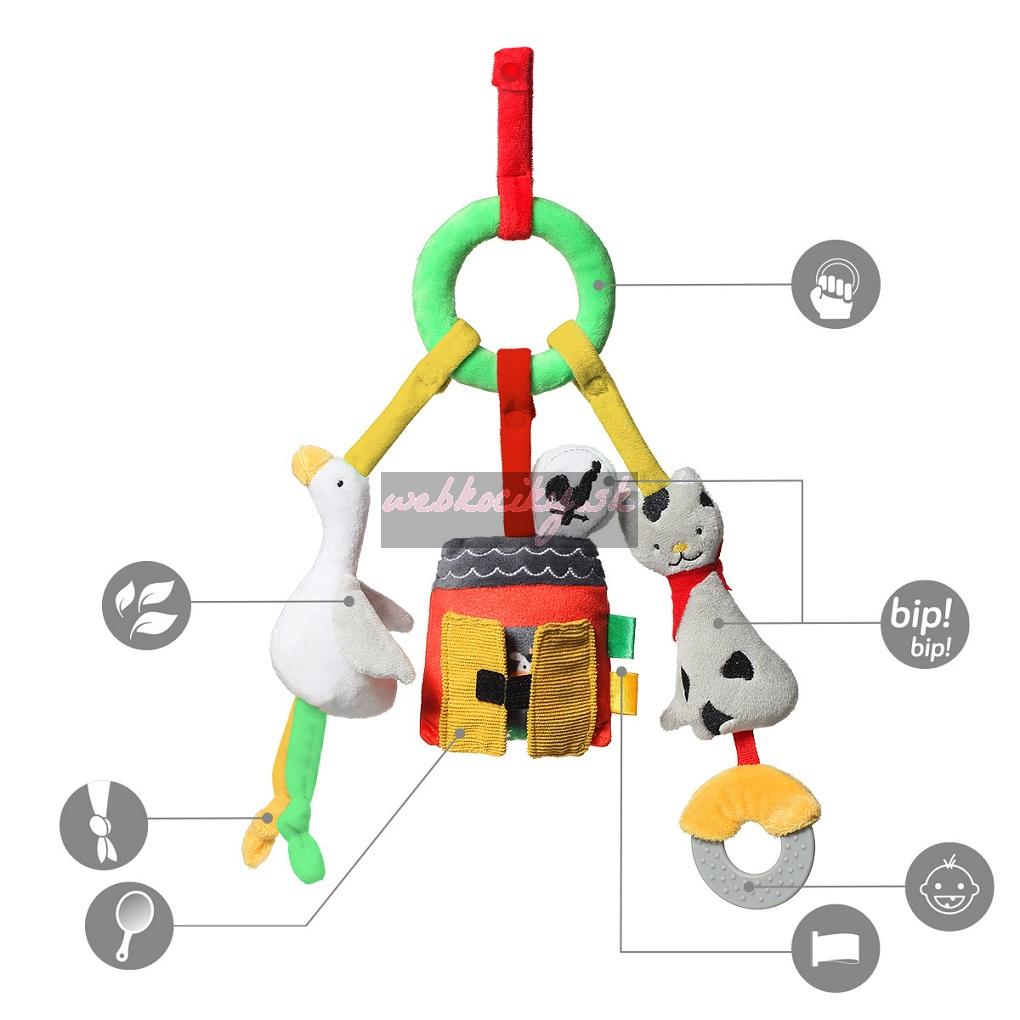 Vzdelávacia hračka zoznámi vaše dieťa s rozmanitým svetom farieb, zvukov a tvarov. Tvar hračky v podobe hrazdičky umožňuje zavesenie na všetky druhy autosedačiek alebo kočíkov. Vďaka tomu môže dieťa sprevádzať počas cestovania a prechádzok.