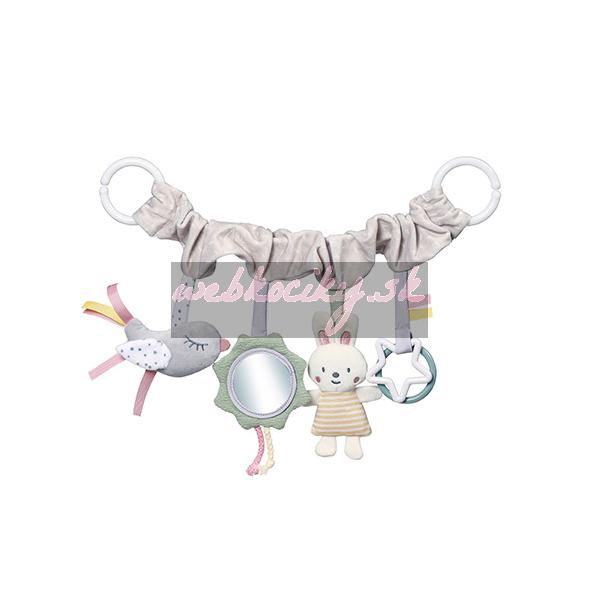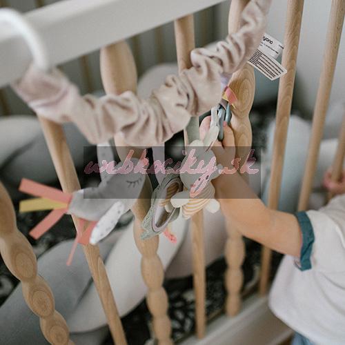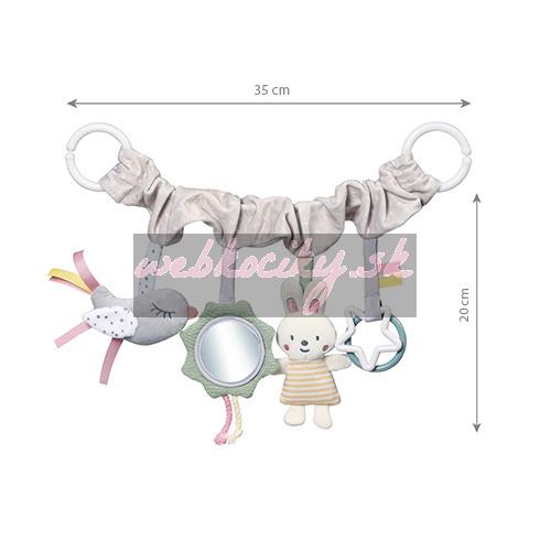 - Pomocou praktického a univerzálneho úchytu pripevníte hračku ku kočíku, autosedačke aj postieľke.