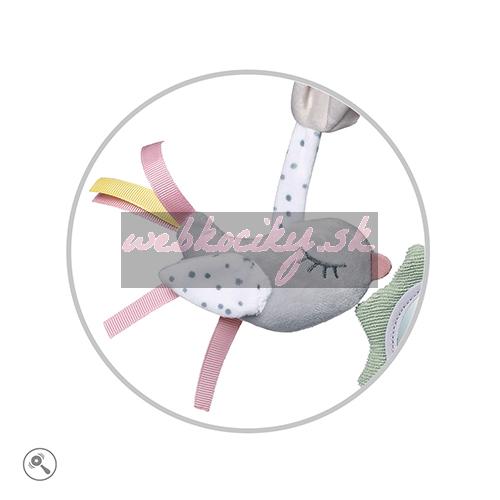 - Jemné hrkanie vydávané vtáčikom priťahuje pozornosť bábätka a pôsobí upokojujúco.