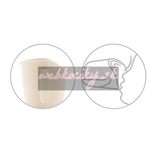 Tento unikátny tréningový hrnček je prispôsobený anatomickým a motorickým schopnostiam detí, ktoré sa učia piť bez cudzej pomoci. Rozvíja zvyk piť z otvorenej nádoby, čo je dôležitý ďalší krok v tréningu kŕmenia. Je to dokonalá náhrada za fľašu alebo netečúci pohár, ktorý zároveň pomáha rozvíjať hlasový aparát. Hrnček minimalizuje riziko udusenia, pretože stimuluje prirodzený pohyb čeľuste počas dojčenia. Dáva dieťaťu možnosť prispôsobiť si uhol a tempo pitia. Učí dieťa samostatnosti pri konzumácii jedál. Hrnček je ľahký pre lepšiu koordináciu pohybu a vďaka unikátnemu ergonomickému tvaru môže dieťatko piť aj v naklonenej polohe. Pohodlné rukoväte poskytujú plnú kontrolu pri nakláňaní šálky počas pitia.