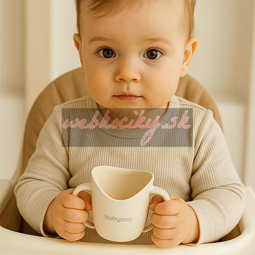 BABYONO Hrnček ergonomický s uškami 120 ml beige 6m+