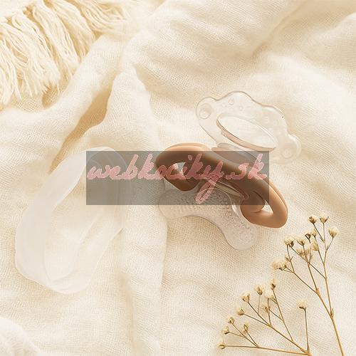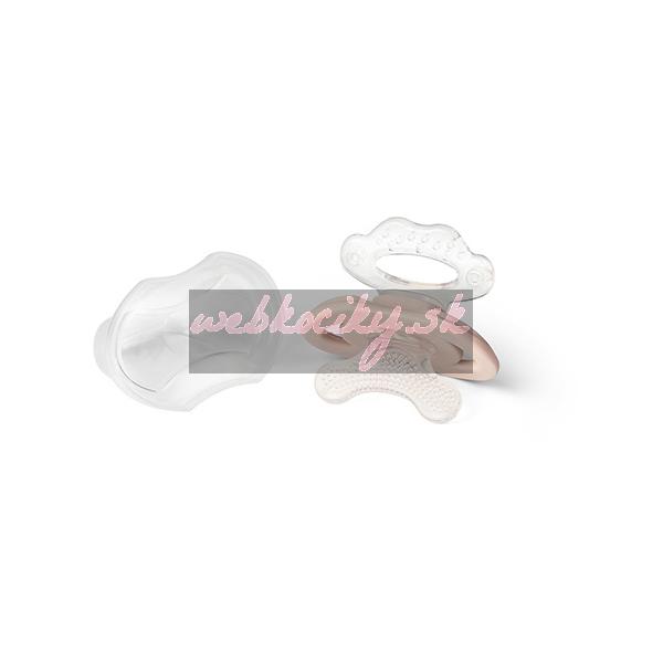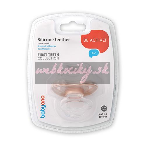 BABYONO Hryzačka silikónová bez BPA v tvare cumlíka s krytom béžová 3m+