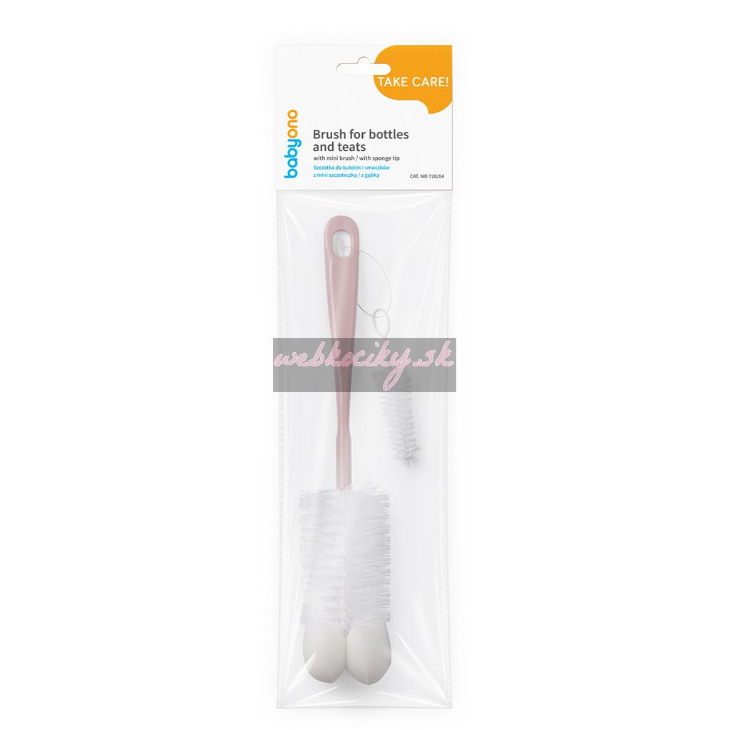 BABYONO Kefa na dojčenské fľaše s mini kefkou Pink