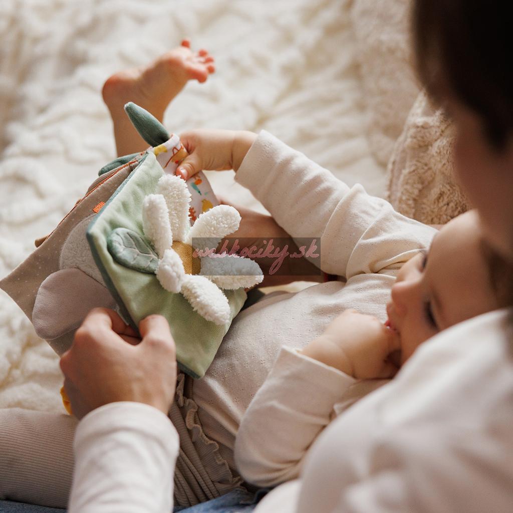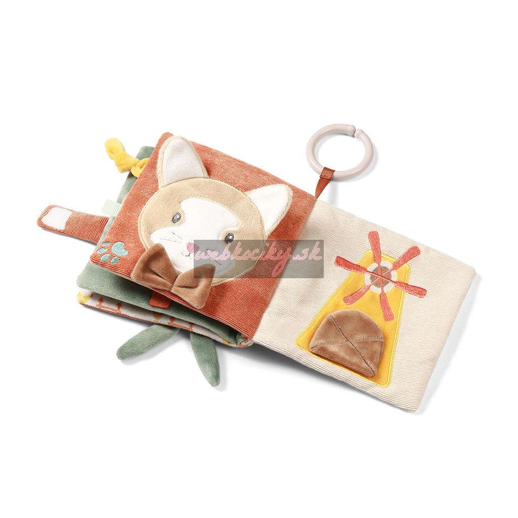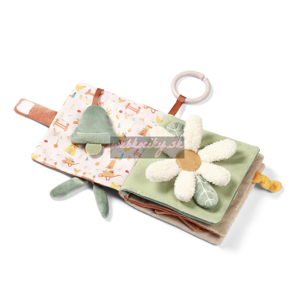 Zábavné materiály a rozmanité textúry povzbudzujú k objavovaniu, zatiaľ čo zaujímavé tvary podnecujú ich fantáziu a stimulujú zrak. Stránky tejto pútavej knihy obsahujú šuštivý zvuk, ktorý pri stlačení vydáva zaujímavé zvuky, hrkálku, ktoré motivuje k zatraseniu, a zrkadlo pre objavovanie vlastného odrazu. Farebné stužky pomáhajú rozvíjať úchopové schopnosti. Túto látkovú knihu môžete zavesiť na postieľku, kočík alebo autosedačku. Je to skvelá zábava a učenie v jednom!