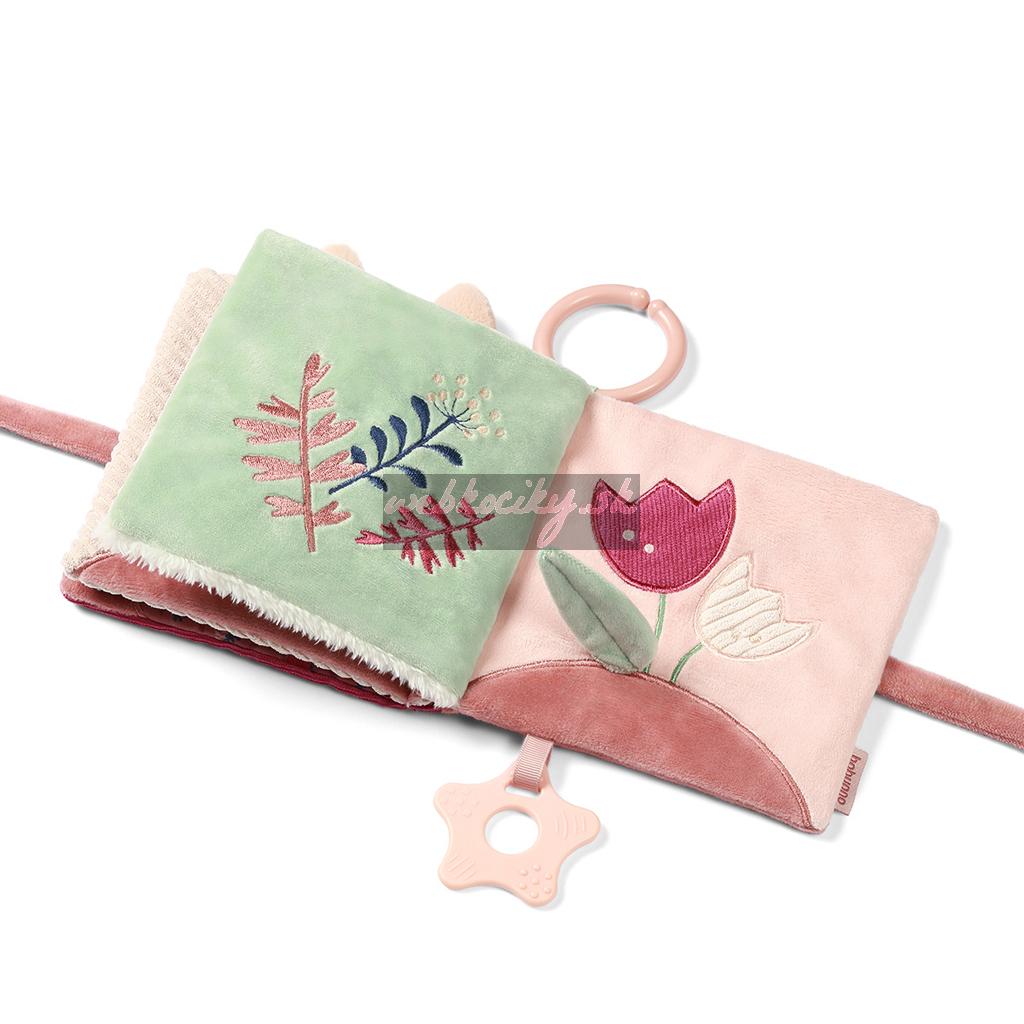 Stránky pri stláčaní vydávajú zaujímavé zvuky, hrkálku na povzbudenie trasenia, zrkadlo na skúmanie vlastného odrazu, visačky a povrázky na povzbudenie uchopenia a hryzátko na masáž ďasien.