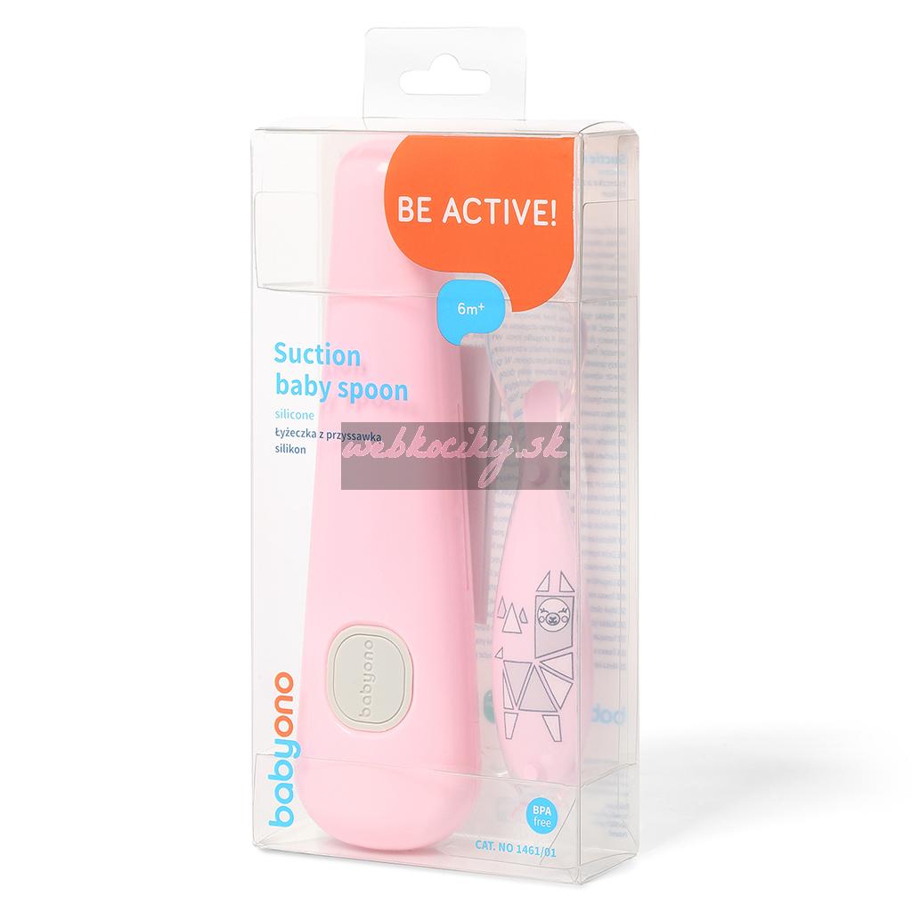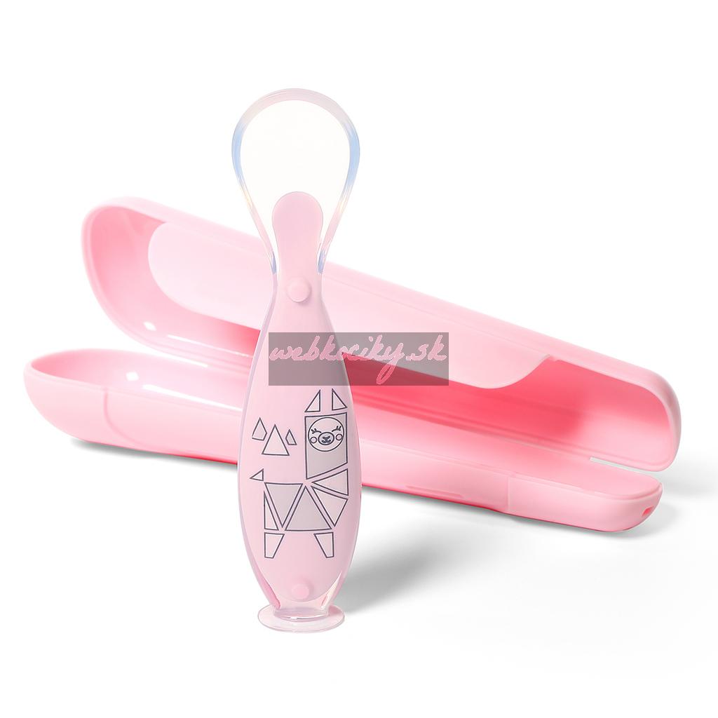 BABYONO Lyžička silikónová s obalom ružová 6m+