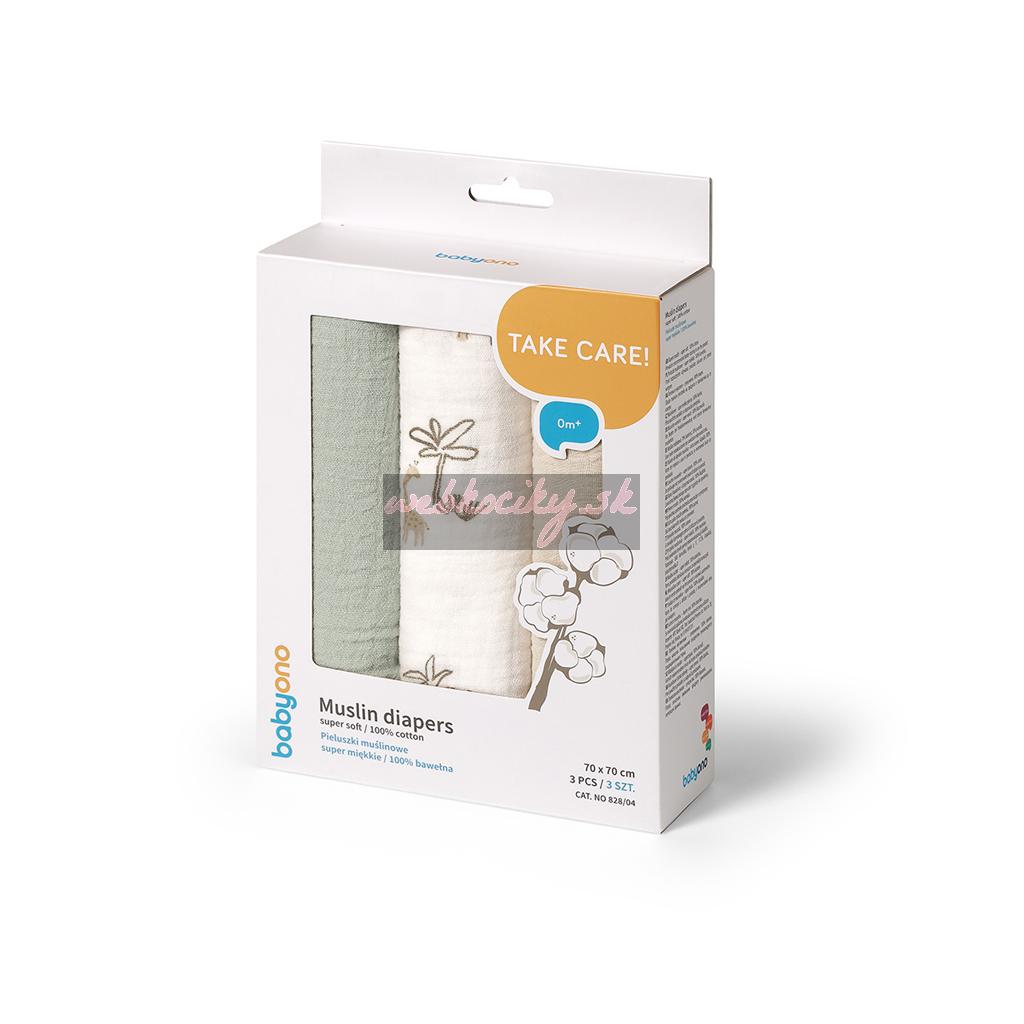 BABYONO Plienky mušelínové Super Soft 3 ks, Green 70 x 70 cm