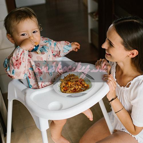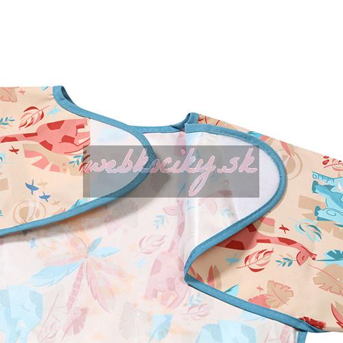 Podbradník s rukávmi dokáže zabezpečiť oblečenie Vášho bábätka pred škvrnami. Ukáže sa Vám to pri každodennom stolovaní, keď sa Vaše dieťatko učí jesť, pri hrách ale i pri umeleckých cvičeniach.