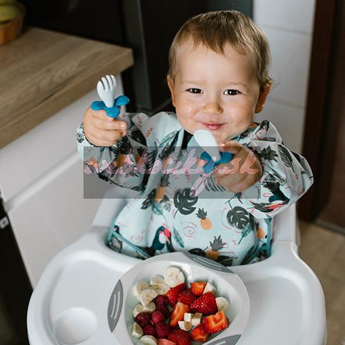 Podbradník s rukávmi dokáže zabezpečiť oblečenie Vášho bábätka pred škvrnami. Ukáže sa Vám to pri každodennom stolovaní, keď sa Vaše dieťatko učí jesť, pri hrách ale i pri umeleckých cvičeniach.