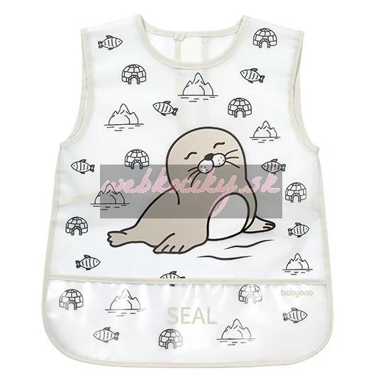 Podbradník pre deti vo veku 24m+ - chráni oblečenie dieťaťa pred znečistením - je vyrobený z ľahko čistiteľného materiálu - uzáver na suchý zips - praktické vrecko - trendy dizajn a veselý motív