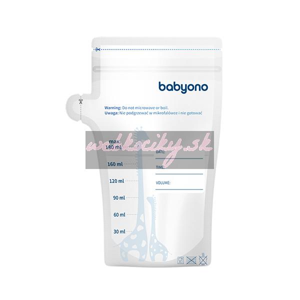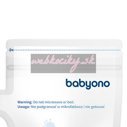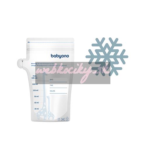 Jednorazové vrecká Babyono sú určené na skladovanie a zmrazenie materského mlieka. Sú bezpečné a hygienické. Zabraňujú zápachu. Stabilná spodná časť vrecka a pevný zips chránia mlieko pred rozliatím, zatiaľ čo primerane tvarovaný lievik zjednodušuje naliať mlieko do fľaše.