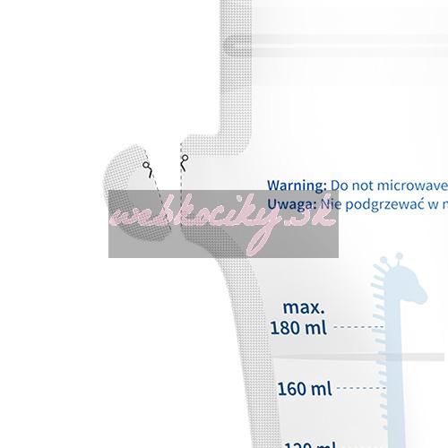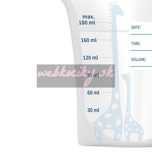 Vrecko uskladní naraz veľké množstvo mlieka - až 180 ml. Presná mierka slúži na odmeranie vhodnej dávky materského mlieka.