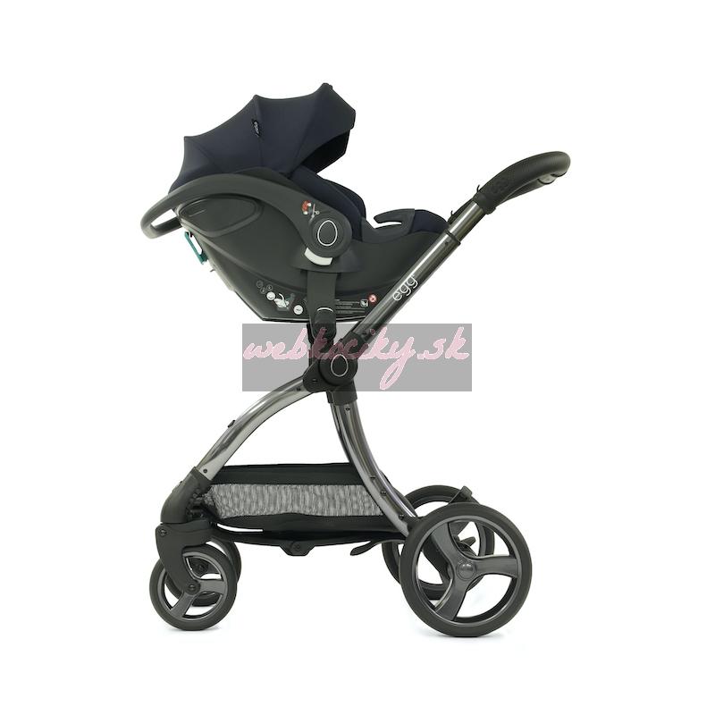 - balenie kočíka obsahuje podvozok, sedaciu časť so strieškou, nákupný košík, pláštenku, nánožník a sieťku proti hmyzu (nájdete ju v kapsičke zo spodnej strany opierky nôh, možno použiť aj na hlbokú vaničku kočíka egg²®;